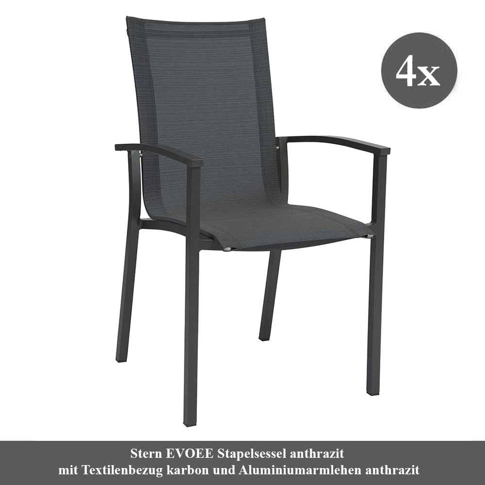 4x Stern EVOEE Stapelsessel anthrazit mit Textilenbezug karbon und Aluminiumarmlehen anthrazit