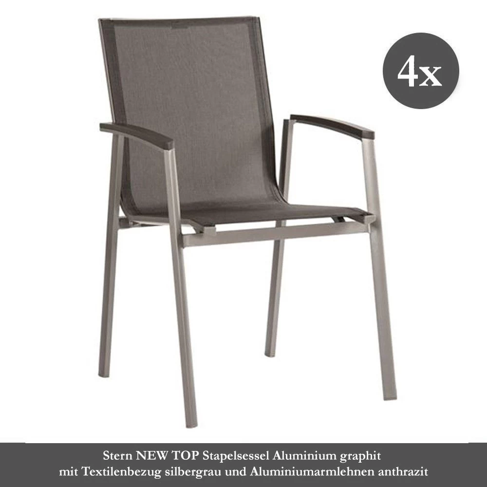 4x Stern NEW TOP Stapelsessel Aluminium graphit mit Textilenbezug silbergrau und Aluminiumarmlehnen anthrazit