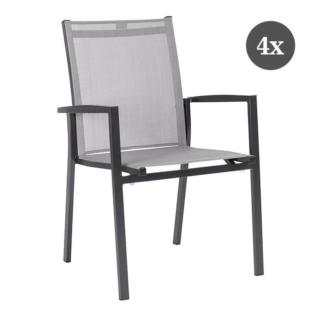 4x Stern Stapelsessel New Levanto, Aluminium anthrazit mit Textilenbezug silber und Aluminiumarmlehnen anthrazit