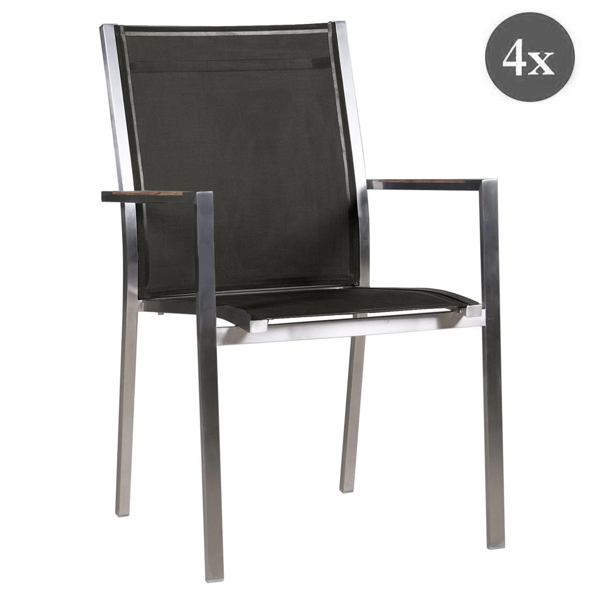 | 4x Zebra Stapelsessel One dark platinum Edelstahlgestell, hochwertiges Textilen, Teakholzarmlehnen |