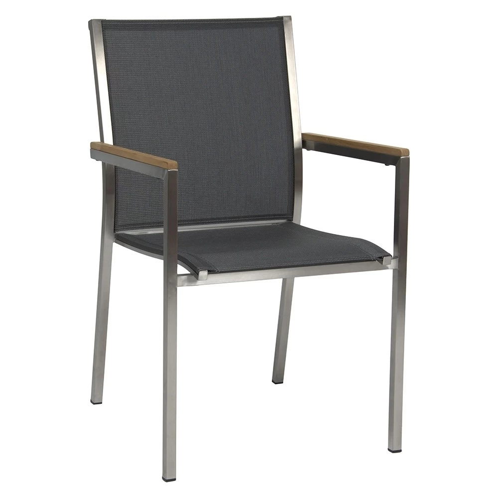 6x Stern Stapelsessel Polaris Edelstahl mit Bezug Textilen silbergrau und Teakarmlehnen und Stern 162/220×90