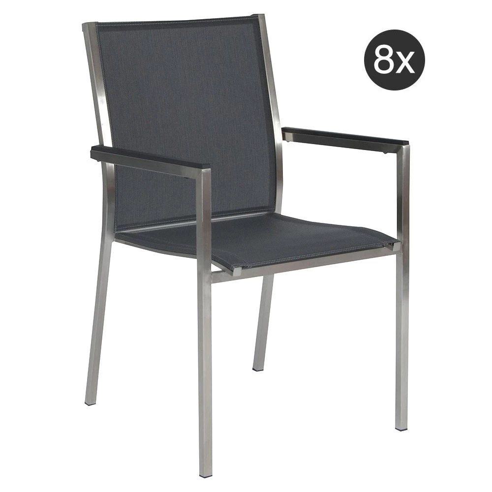 | 8x Stern Stapelsessel Polaris, Edelstahl mit Textilen silbergrau und Alu-Armlehnen schwarz |