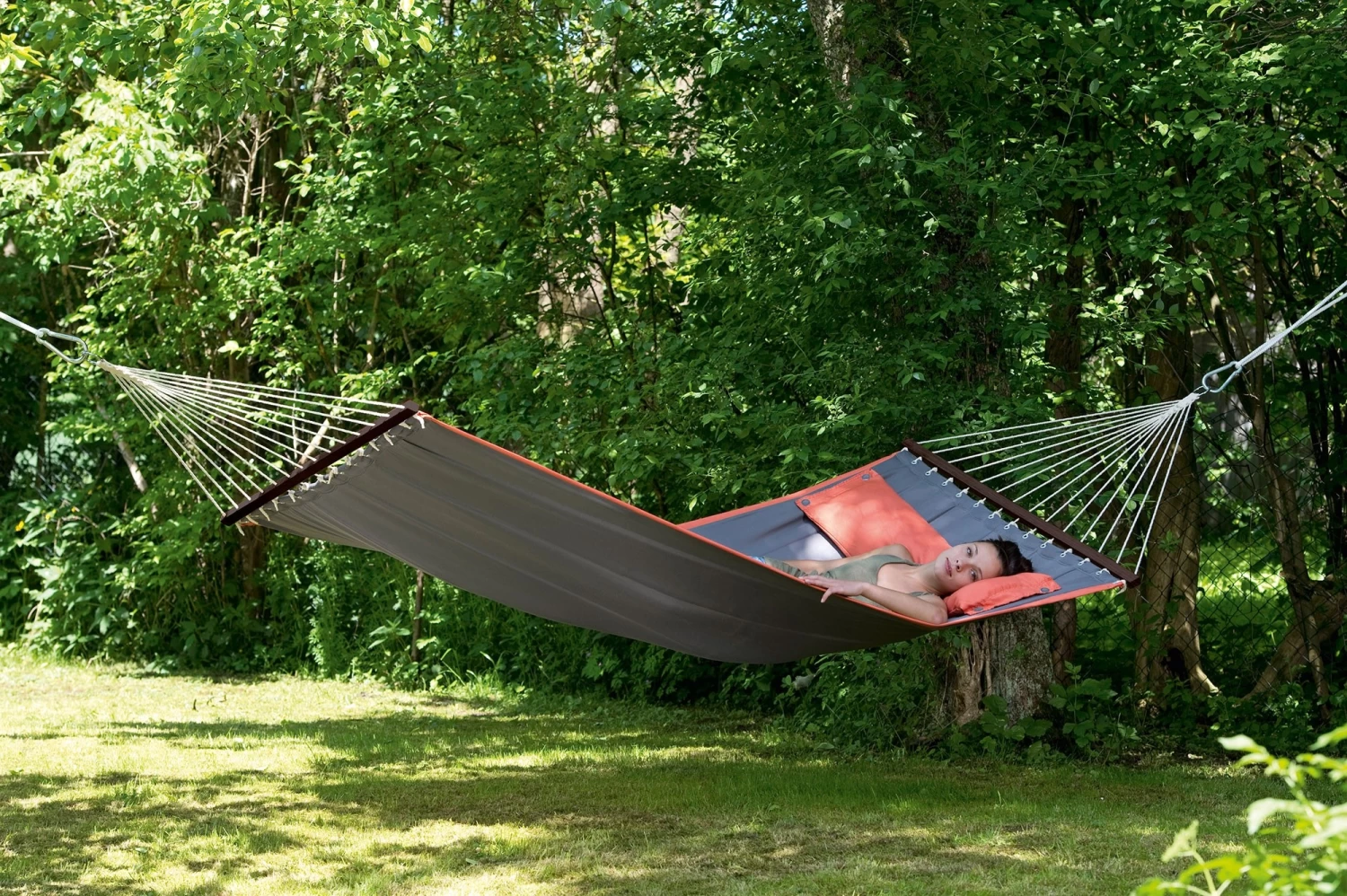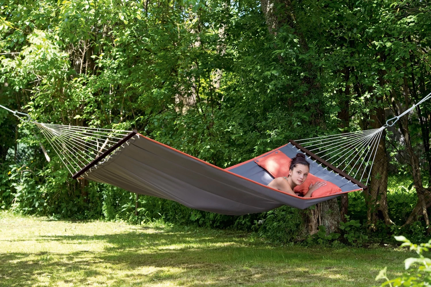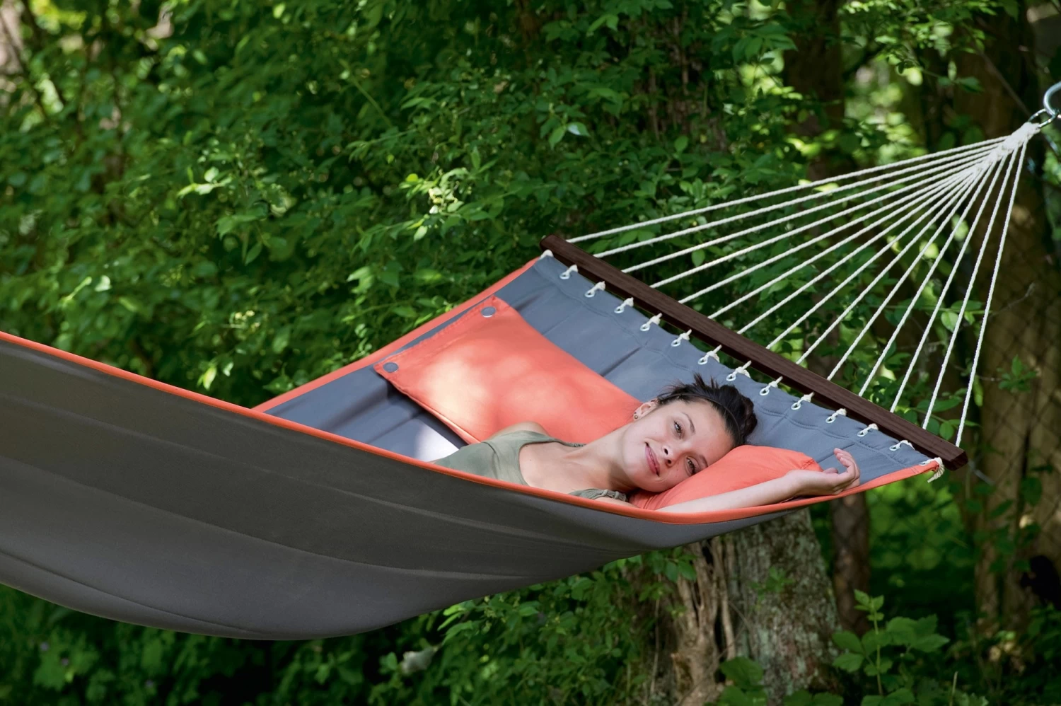 Die trendige Stabhängematte wurde im amerikanischen Design gefertigt. Daher sind sie sehr groß, weich und gefüttert. Dazu gibt es diese Stabhängematten in äußerst modernen Farben und natürlich in einem trendigen Design. Darüber hinaus besitzt diese exquisite Hängematte noch ein aufknüpfbares Kissen, wodurch Sie den idealsten und bequemsten Liegekomfort haben.