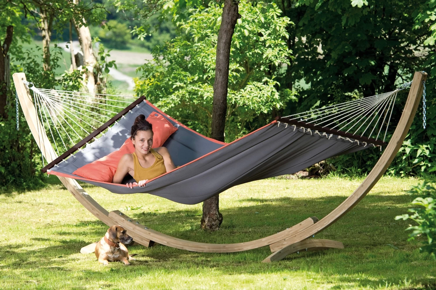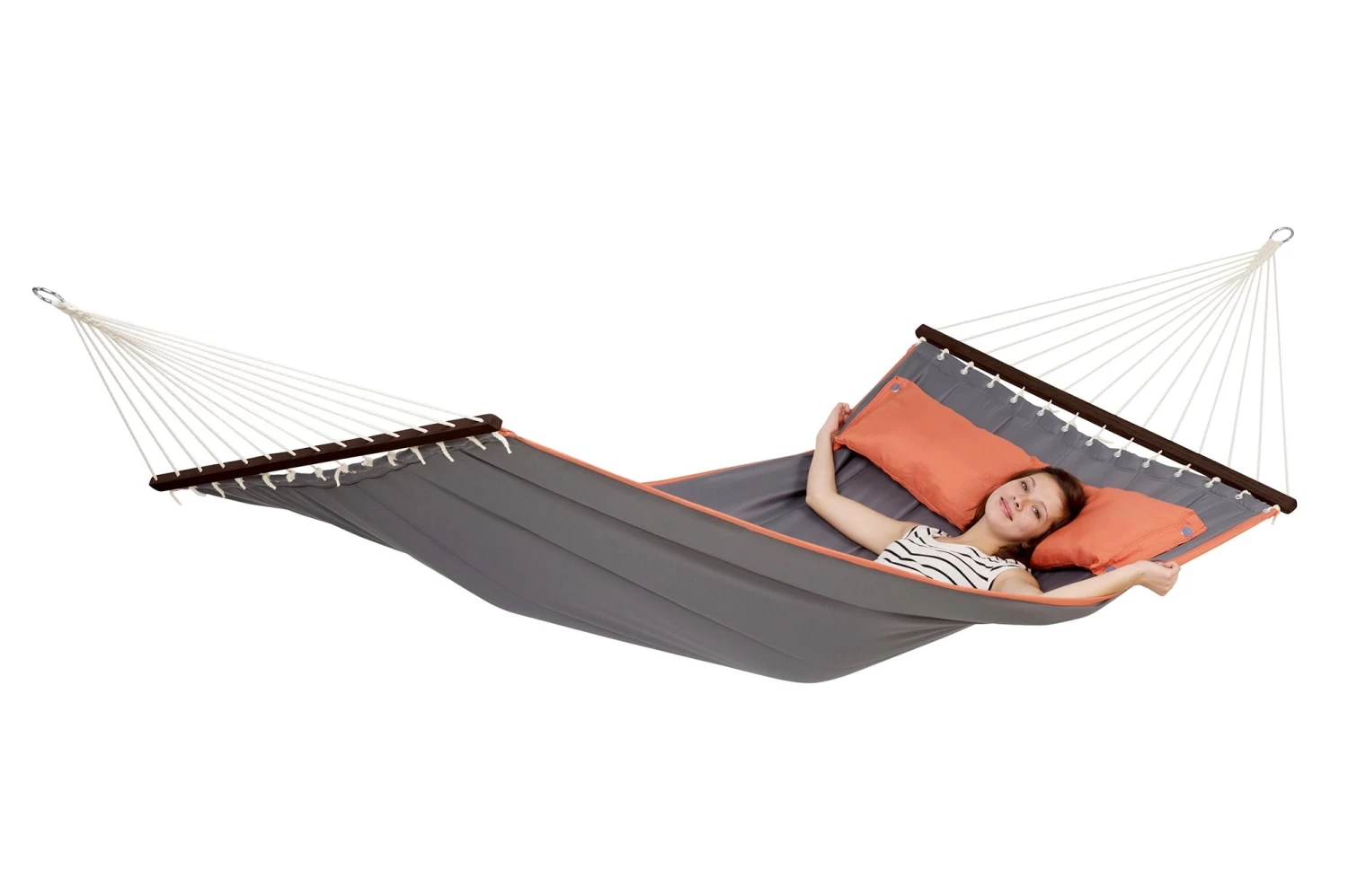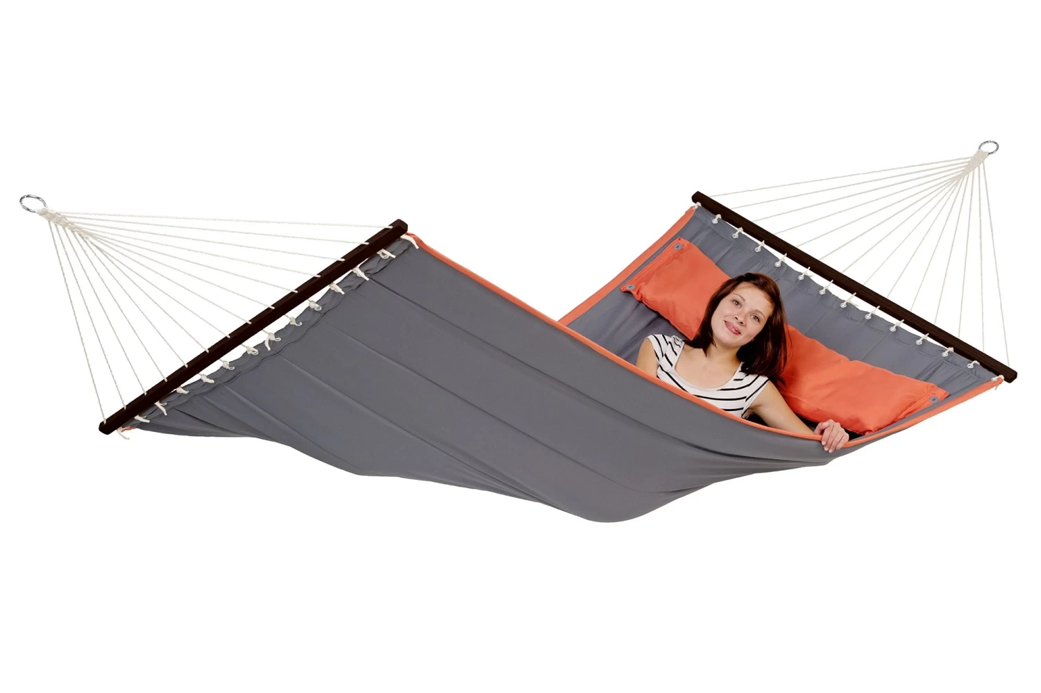 Die trendige Stabhängematte wurde im amerikanischen Design gefertigt. Daher sind sie sehr groß, weich und gefüttert. Dazu gibt es diese Stabhängematten in äußerst modernen Farben und natürlich in einem trendigen Design. Darüber hinaus besitzt diese exquisite Hängematte noch ein aufknüpfbares Kissen, wodurch Sie den idealsten und bequemsten Liegekomfort haben.