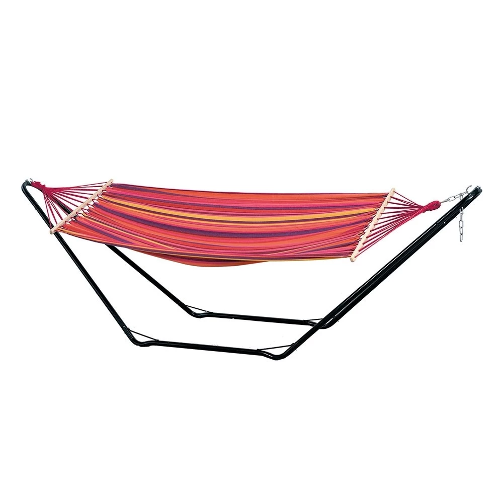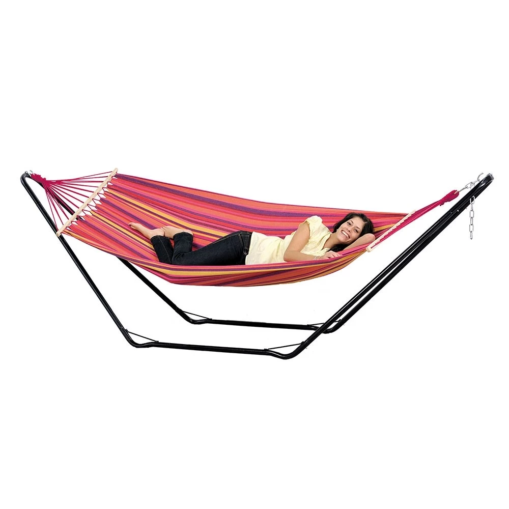 Ein pulverbeschichteter Stahlrahmen passt perfekt zu einer Stabhängematte in der beliebten und beliebten Farbe vulcano.