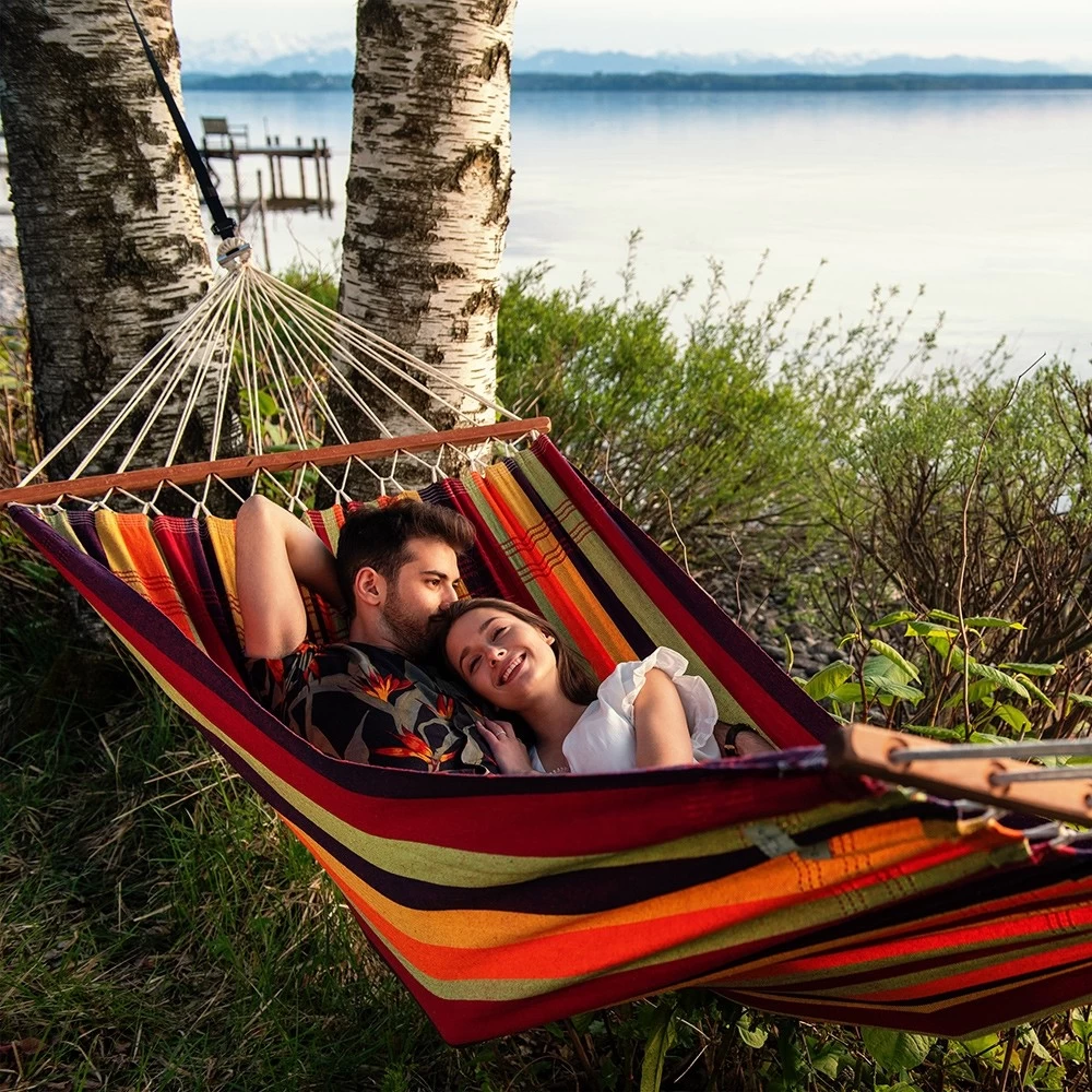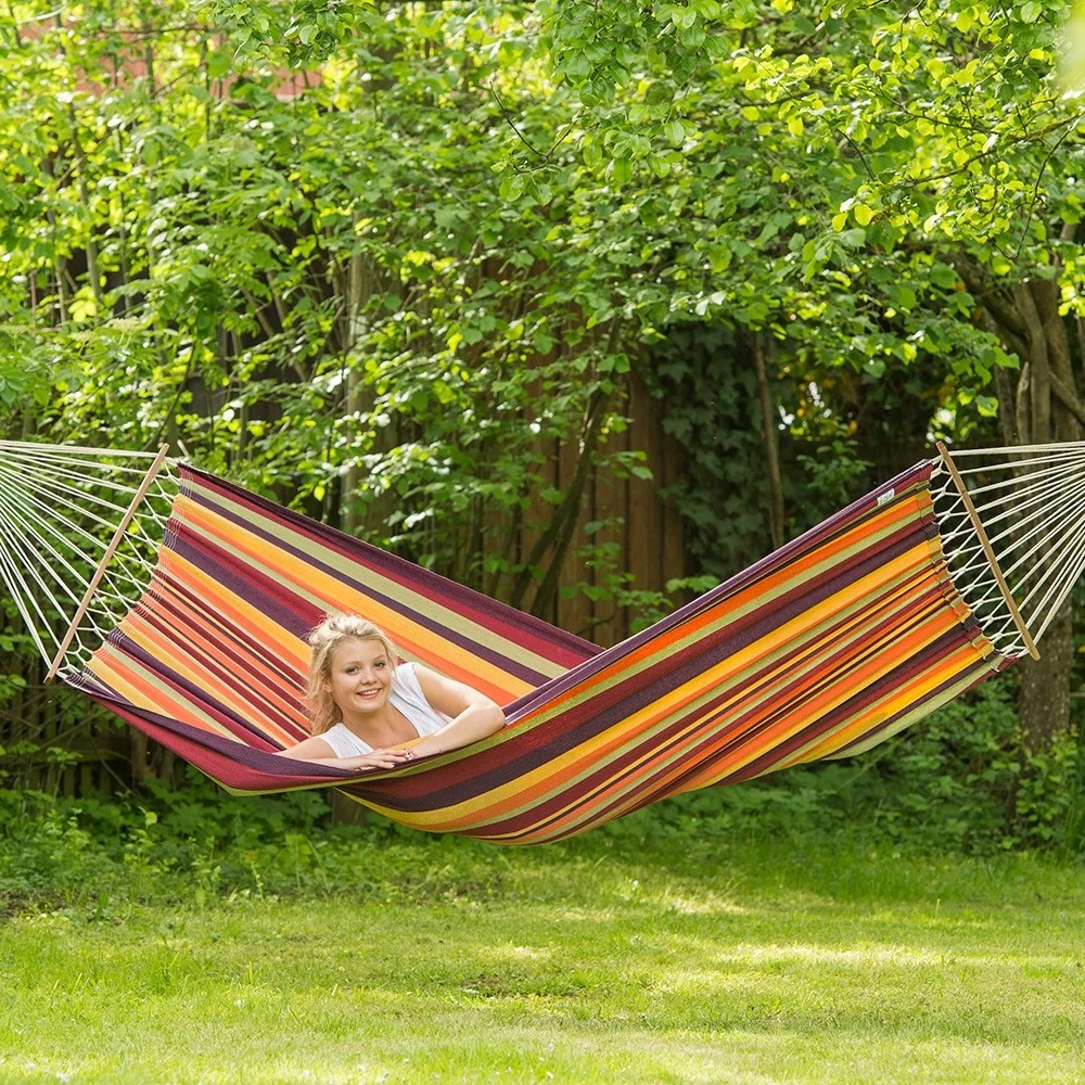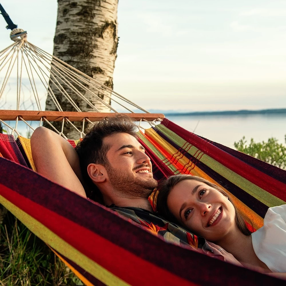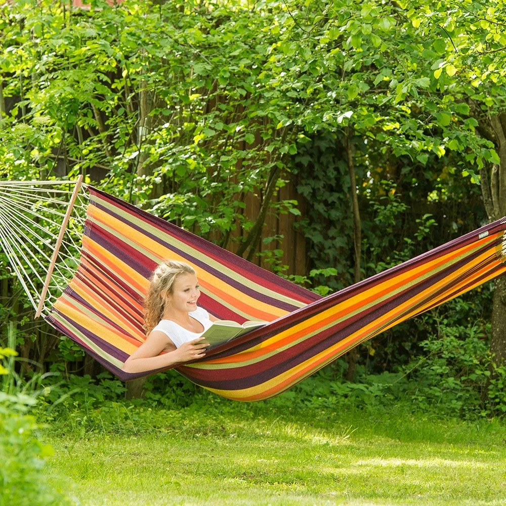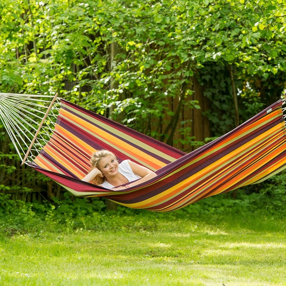 Stabhängematten müssen nicht weniger bequem sein als traditionelle Hängematten. Das erreicht AMAZONAS mit seiner tropischen Stabhängematte Amazonas Brasilia.