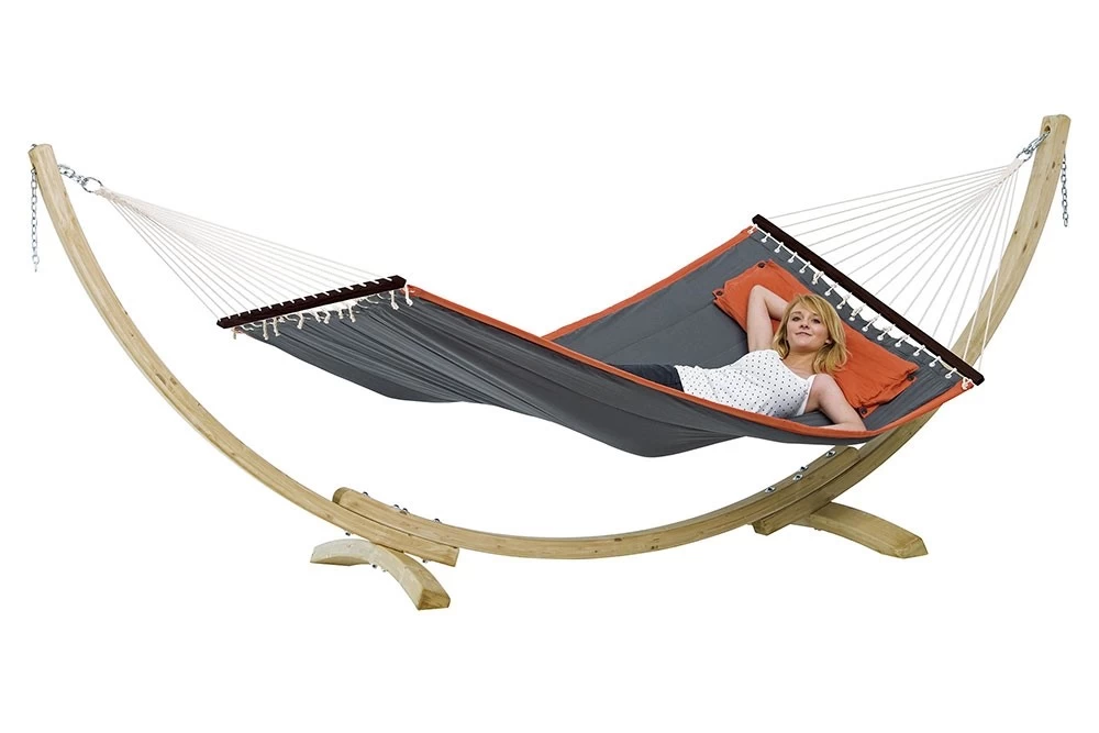 Jetzt zusammen mit der American Dream Hängematte! Die trendige Hängematte im amerikanischen Design. Die Südstaaten der Vereinigten Staaten haben es vorgemacht: große Hängematten mit weich gepolstertem Gestänge moderne Farben und Designs für diesen Stil Inklusive abnehmbarem Kissen