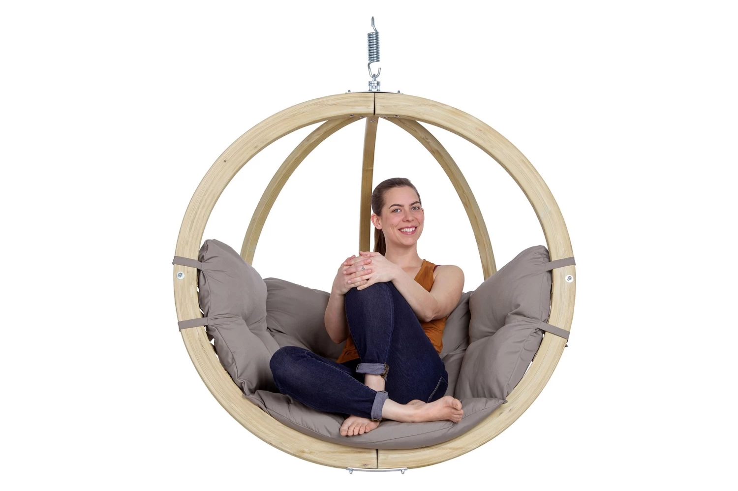Sollten Sie keine Möglichkeit haben, die Hängekugel an der Decke zu befestigen, dann empfehlen wir Ihnen das hochwertige Holzgestell „AMAZONAS Globo Stand“.