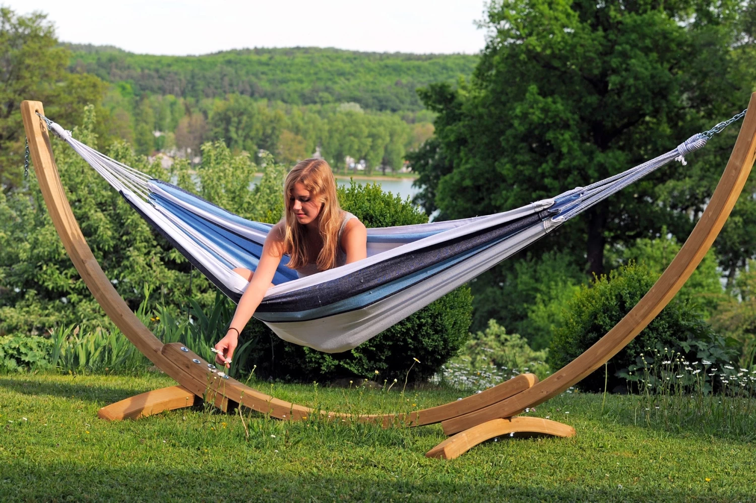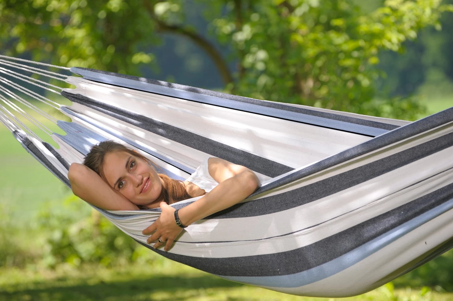 Die sehr kuschlige Hängematte Salsa marine von dem Hersteller Amazonas ist eine sehr große XL-Hängematte und bietet somit genug Platz. Daher ist dies eine äußerst elegante Art sich durch den Sommer zu schaukeln.