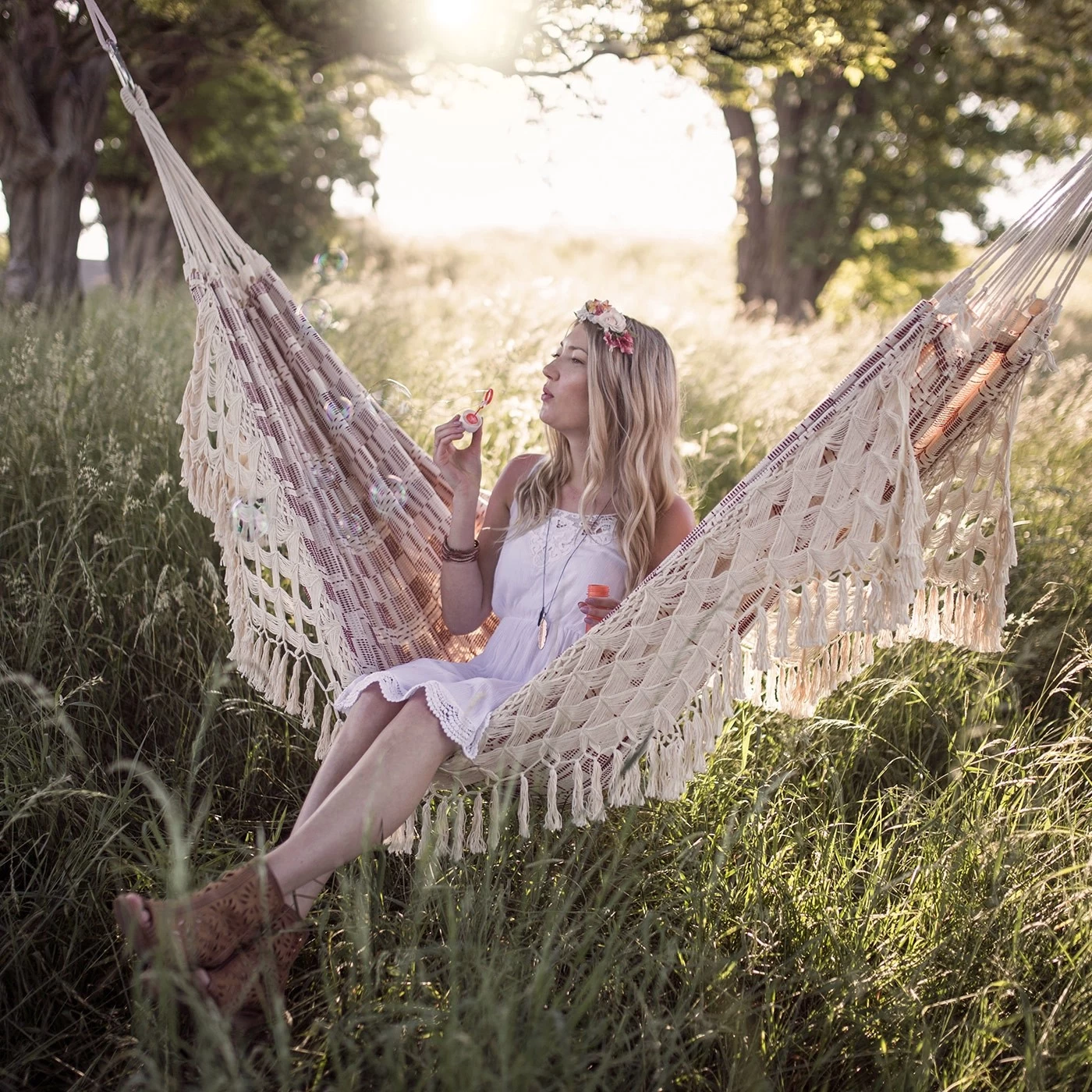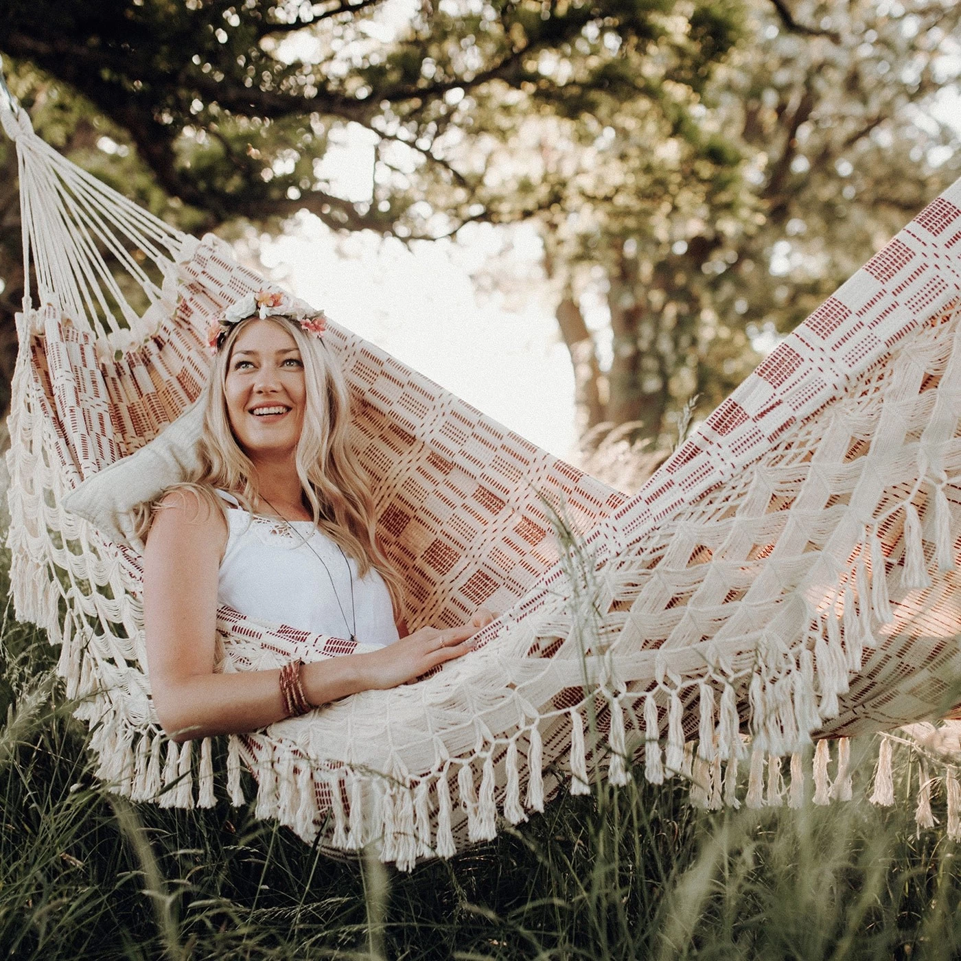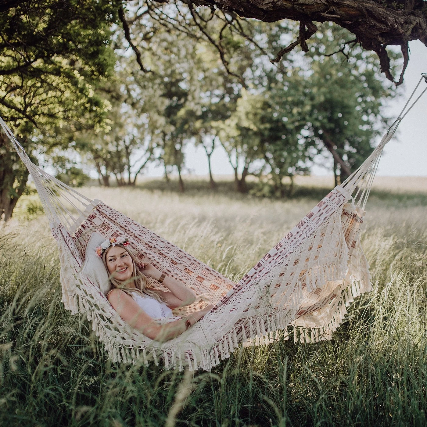 Die höchstelegante und sehr ansehnliche Tuchhängematte wird das neue Highlight in ihrem Gartenreich. Der überaus weiche Stoff wird ermöglicht, dank der speziellen Jacquard-Webtechnik. Unfassbar bequem und eine optische Besonderheit. Der Schmucksaum ist ein weiteres Highlight.
