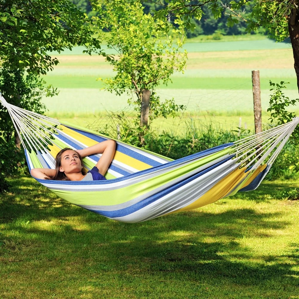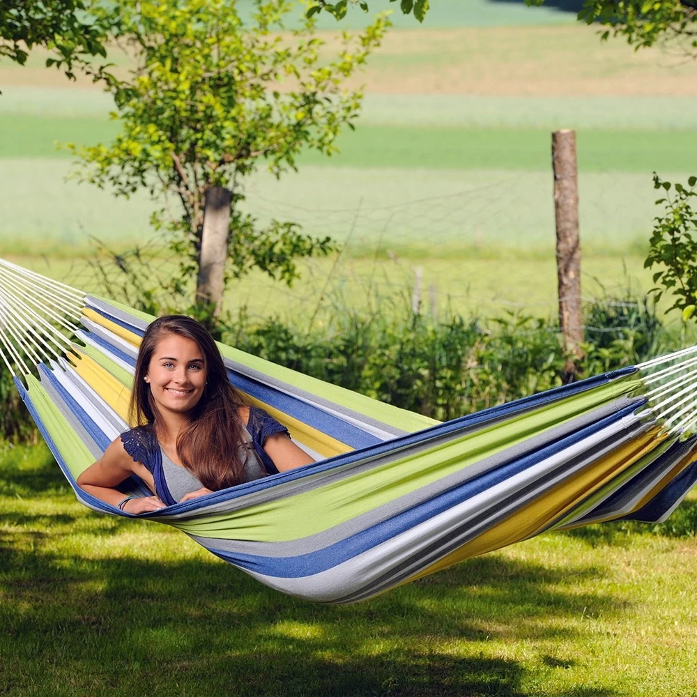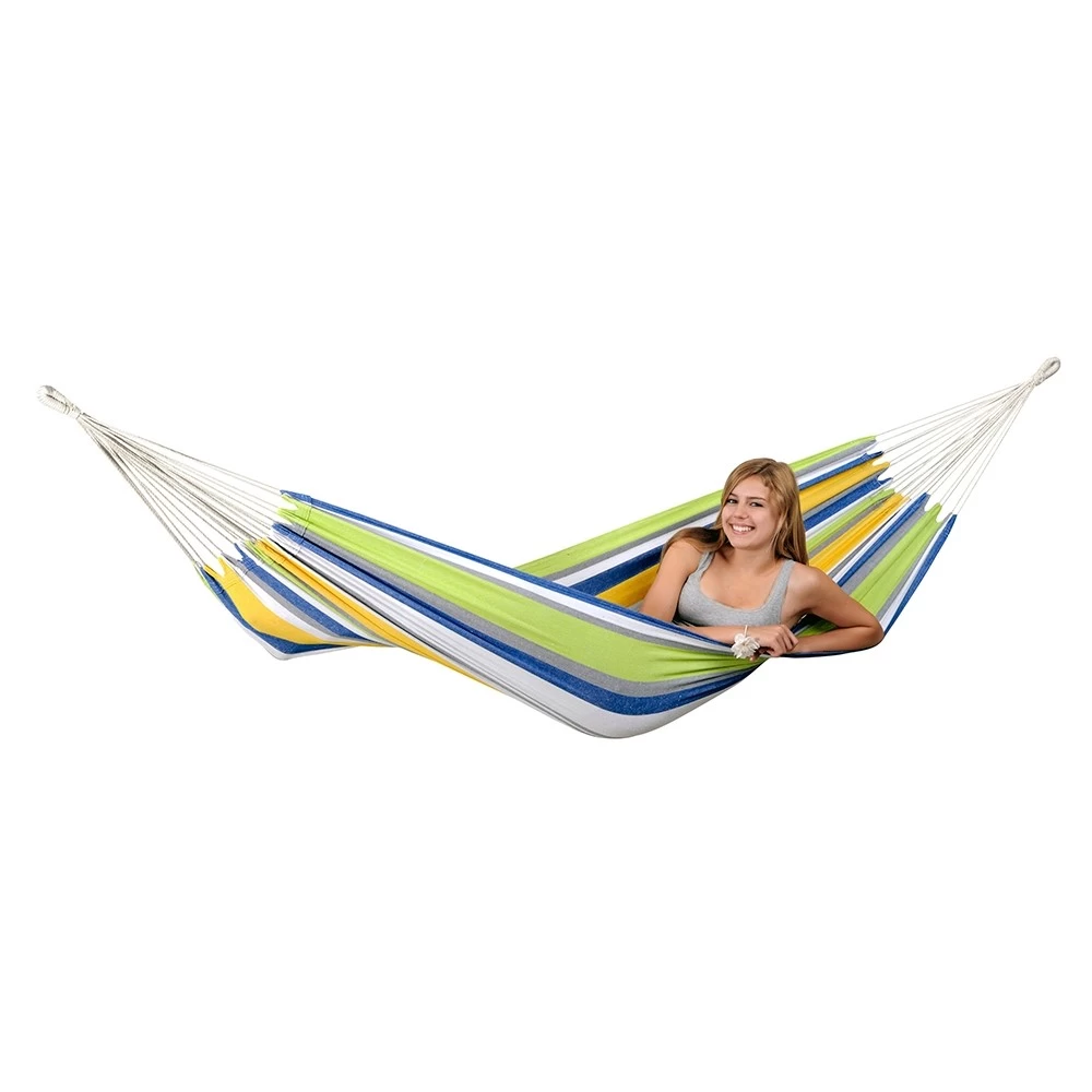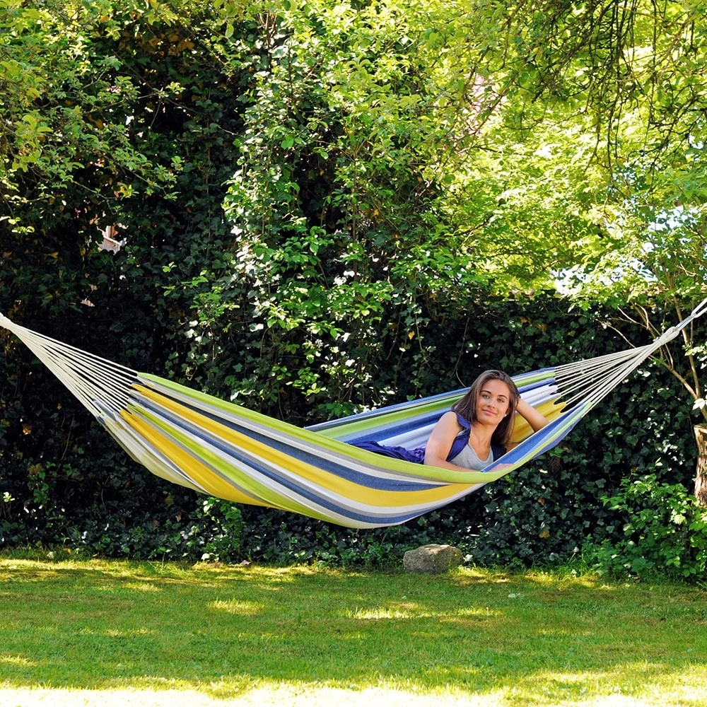 Wenn Sie einen Camping-Tag planen, wenn Sie Ihren Garten, Ihre Terrasse oder Ihren Balkon gemütlicher gestalten wollen, wenn Sie sich gerne im Freien aufhalten oder wenn Sie einfach bunte Farben mögen, wird Sie die Hängematte Tahiti kolibri beeindrucken!