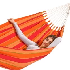 Die Tuchhängematte Jamaica Dolce Vita in der XL Größe. Fantastische Farbgebung, absolut wasch- und farbecht. Erstklassiger Liegekomfort für 2 bis 3 Personen. Überzeugen Sie sich selbst!
