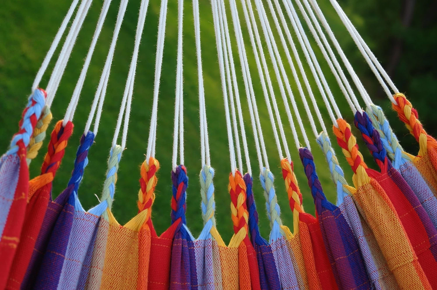 Wir haben uns bei unseren Hängematten bewusst für die traditionelle und sehr kunstvolle kolumbianische Fertigungsart entschieden. Der bedeutende Punkt hierbei ist, dass der Stoff der Hängematten an den Enden per Hand zu Zöpfen geknüpft wird und der Übergang so fließender ist. Für die Hängematte bedeutet das, dass diese langlebiger ist und ein Reißen an dieser Stelle so gut wie nie passiert. Zugleich wird das tragende Gewicht auf alle Aufhängeschnüre gleichmäßig verteilt und die Matte kann eine hohe Belastbarkeit gewährleisten. Die ebenfalls von Hand gefertigten Aufhängungsschlaufen und die äußerst belastbaren Schnurre gewährleisten absolute Sicherheit. Das sind eine der wichtigsten Merkmale der LOLA Qualität, welche andere Hersteller nicht bieten können. Die Hängematte erhalten Sie in einer nützlichen Tragetasche, diese können Sie auch als Badetasche benutzen.