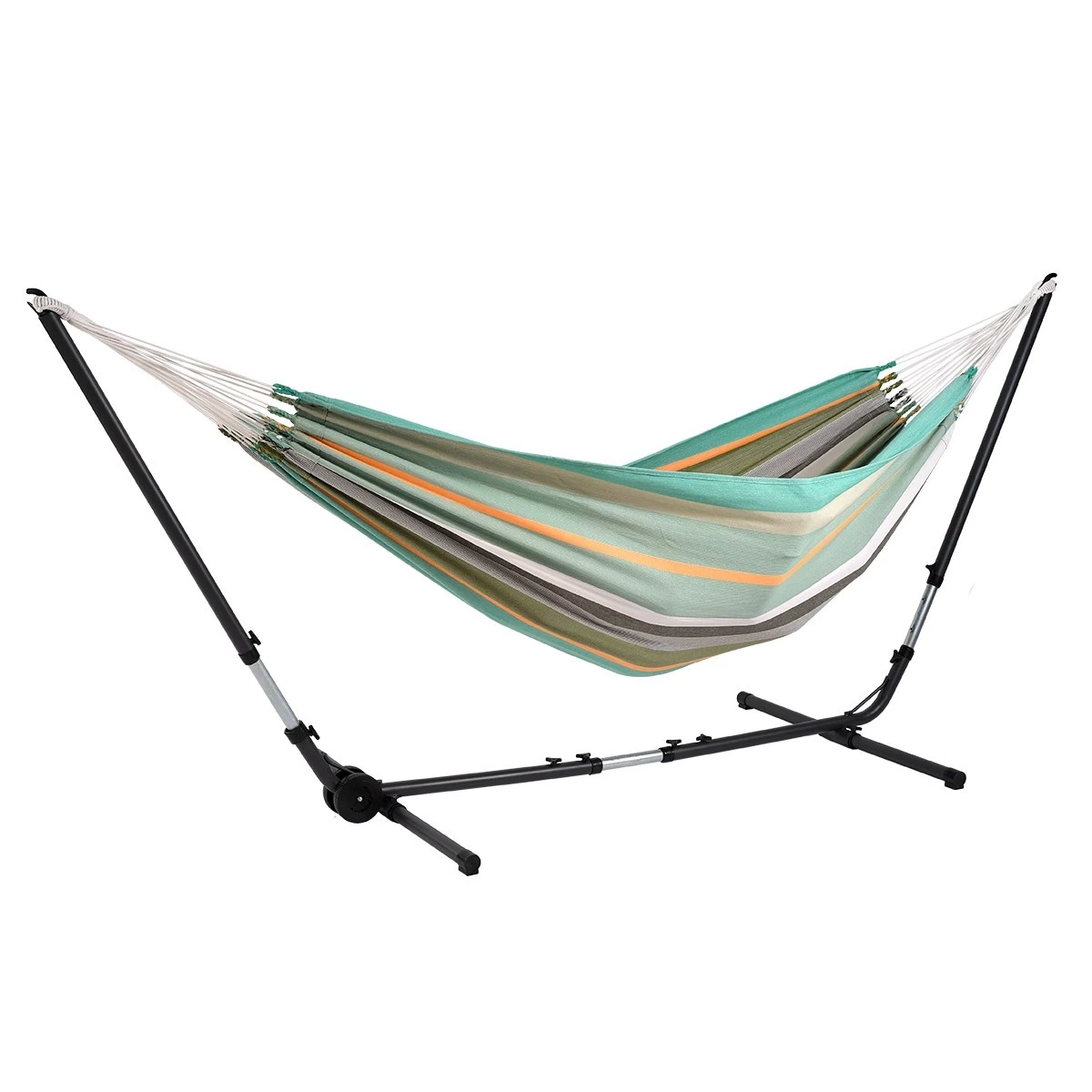 Dieses verstellbare Gestell ist aus einem standfesten Metall gefertigt. Sie können das UNIVERSAL GRANDE auf bis zu 4 m ausziehen und haben somit auch Platz für die ganz großen XXL Hängematten. Durch das integrierte Rad, ist das UNIVERSAL GRANDE auch ganz einfach zu Bewegen.