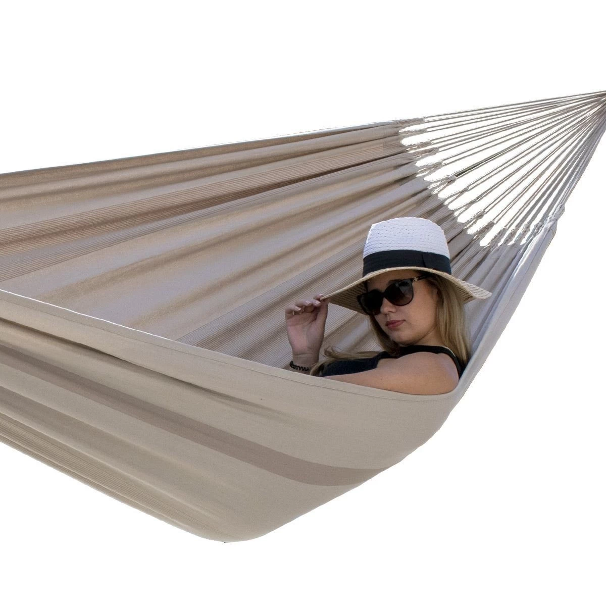 | 1x Lola ROYAL DELUXE Hängemattengestell aus Edelstahl mit Rad 1x Familien-Hängematte Safari Happiness Bio Baumwolle |