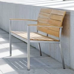 Stern Bank Savona 2-Sitzer Edelstahl Mit Teakbelattung Und Teakarmlehnen FSC®-zertifiziert