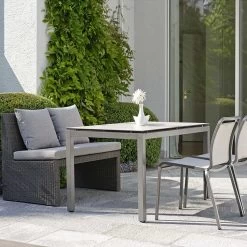 Stern Bank 3-Sitzer Greta Aluminium Anthrazit Kordel Platin/Kissen 100% Polyacryl Seidengrau