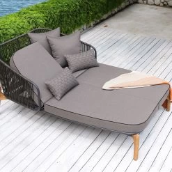 Zebra Pollux Lounge Daybed Plantagenteak Gebürstet, Aluminium Pulverb. Graphite, Wasserd. Sunny-Guard-Carrion-Gew. Milan Dove, Inkl. 4 Dekokissen