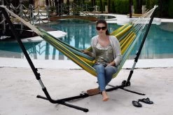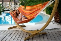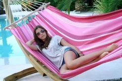 Luxus Hängemattenset Lola ROYAL DELUXE Edelstahlgestell Mit Wetterfester Stabhängematte Hawaii