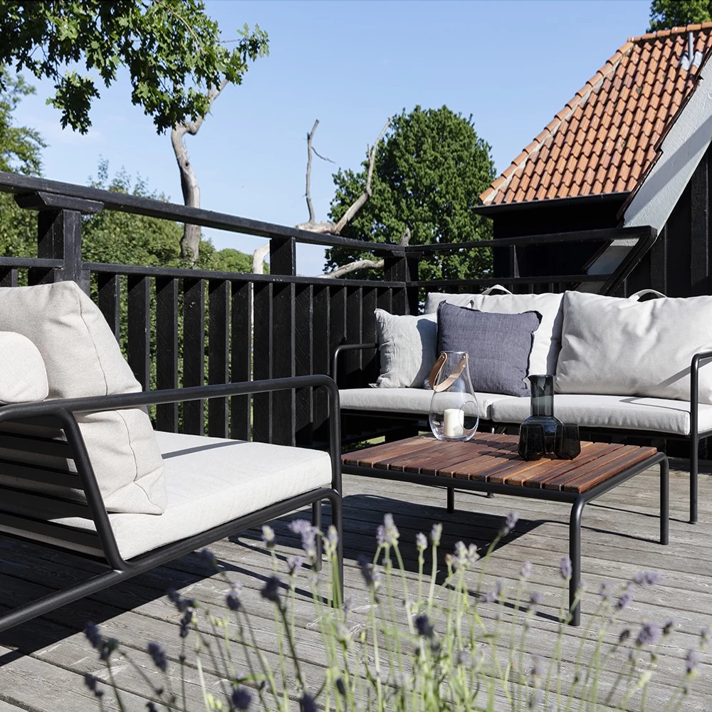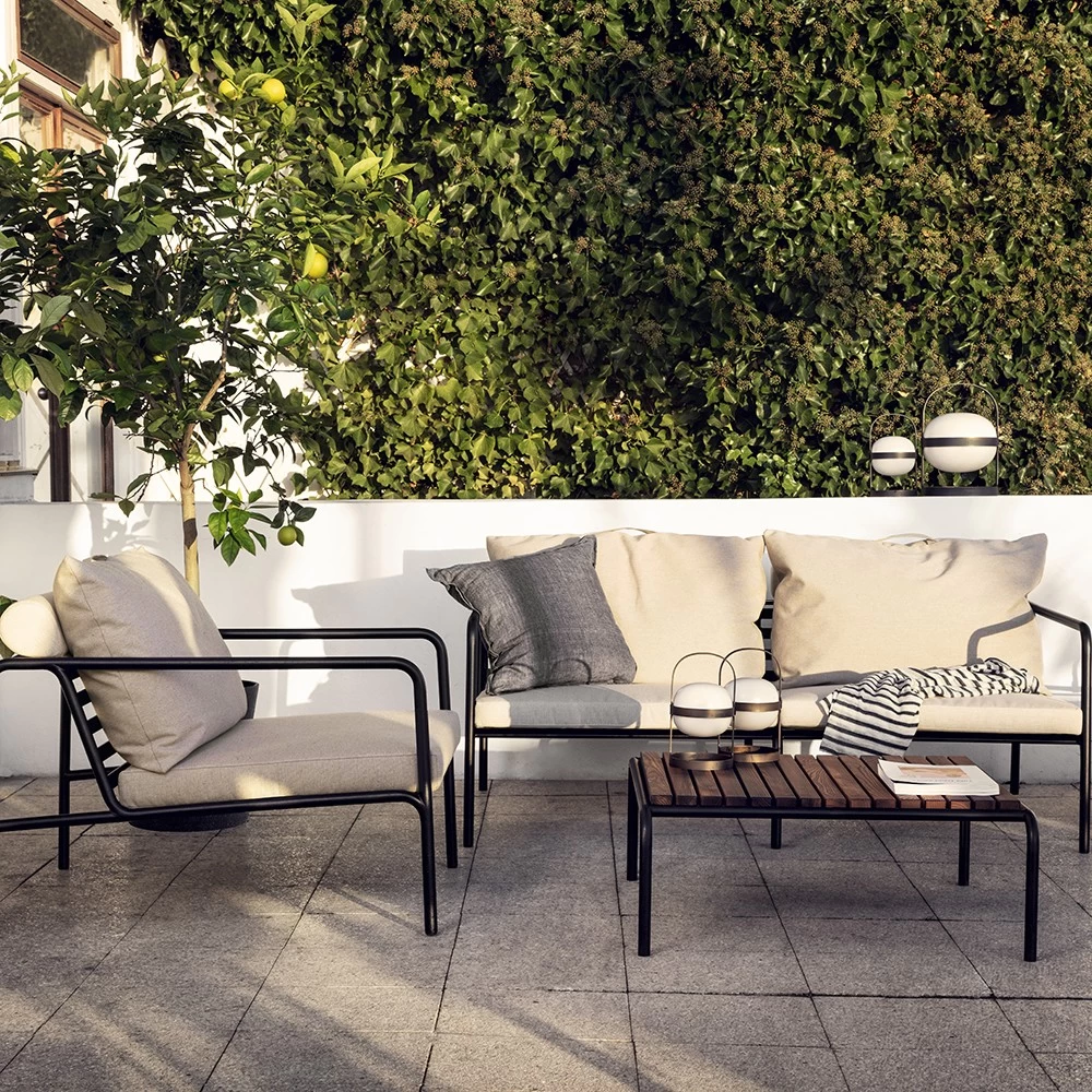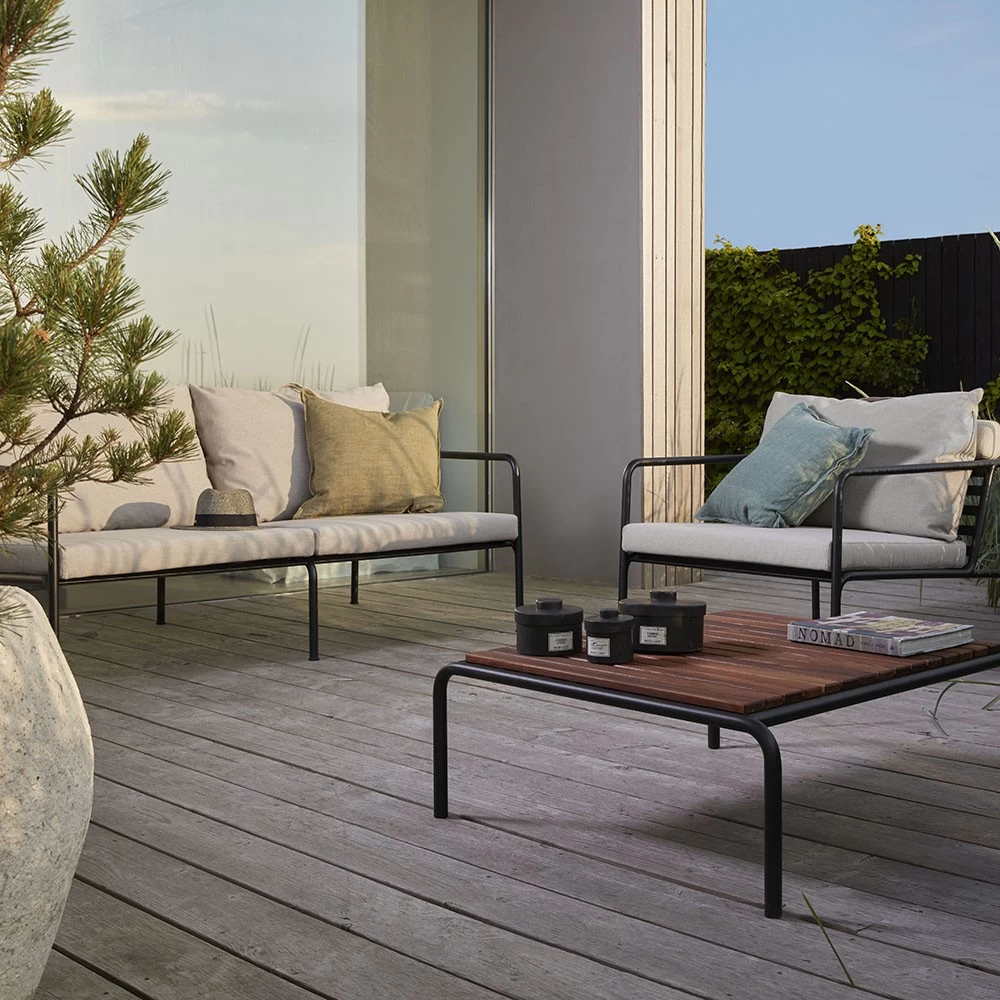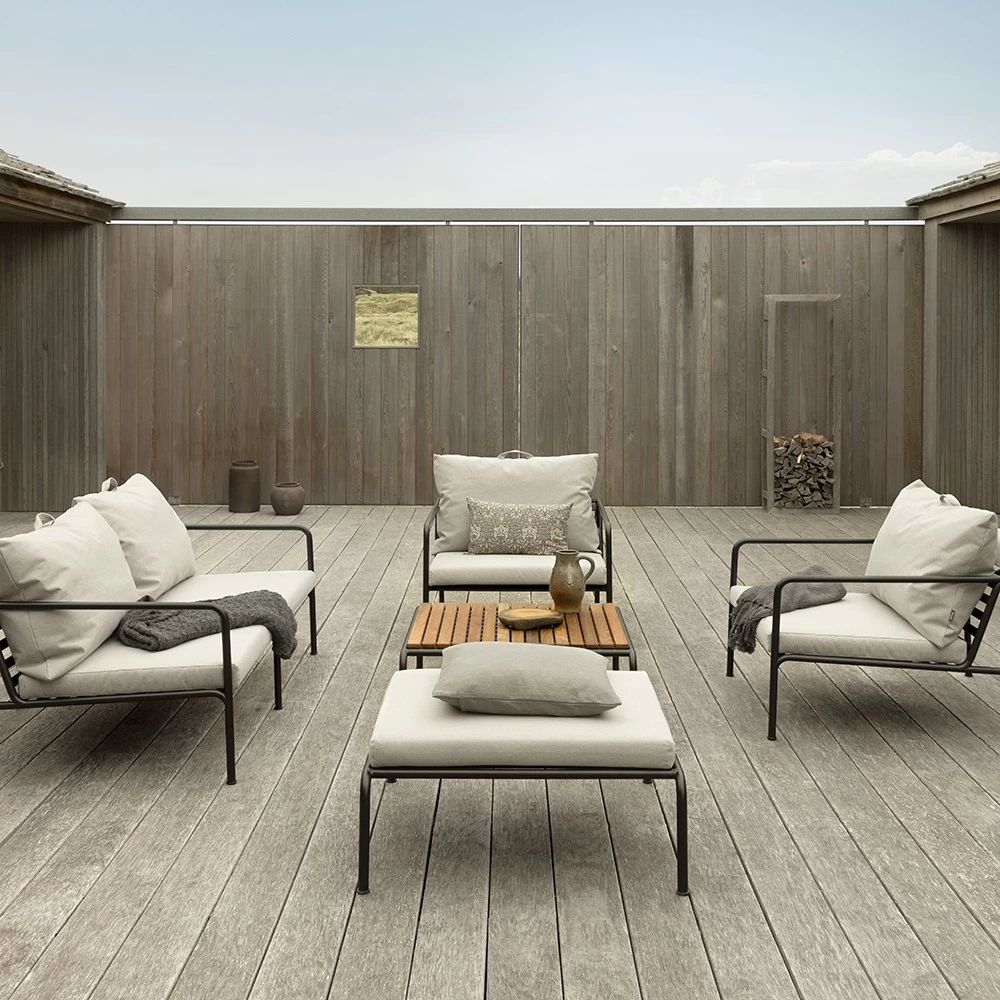 Der AVON Chair ist mit einem wasserabweisenden und fleckenfesten Sunbrella-Stoff bezogen, der zu 50% aus recyceltem Acryl besteht. Dieser umweltfreundliche Stoff ist äußerst strapazierfähig und langlebig, sodass Ihr Stuhl auch nach vielen Sommern noch wie neu aussieht.