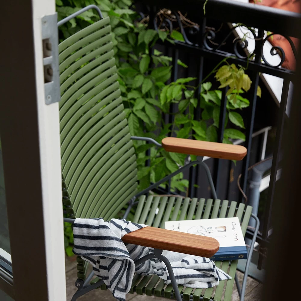 Der CLICK Position Chair ist ideal für den Einsatz im Freien geeignet, da er aus witterungsbeständigen Materialien gefertigt ist. Die speziell entwickelten Lamellen bieten Ihnen eine bequeme Sitzgelegenheit ohne zusätzliche Polsterung. Sie können die Lamellen ganz einfach an- und abklicken, um das Erscheinungsbild des Stuhls nach Ihren Wünschen anzupassen oder verschiedene Farben zu kombinieren.
