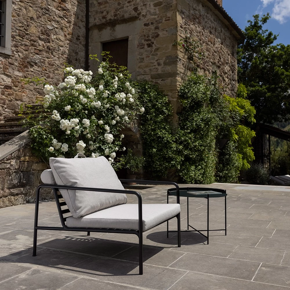 Der EDGE Tray Tisch besteht aus stabilem Stahl und ist somit perfekt für den Einsatz im Freien geeignet. Das Material ist wetterfest und hält den unterschiedlichen Wetterbedingungen stand. Sie können den Tisch also bedenkenlos im Garten stehen lassen, ohne sich um Schäden oder Rost sorgen zu müssen.