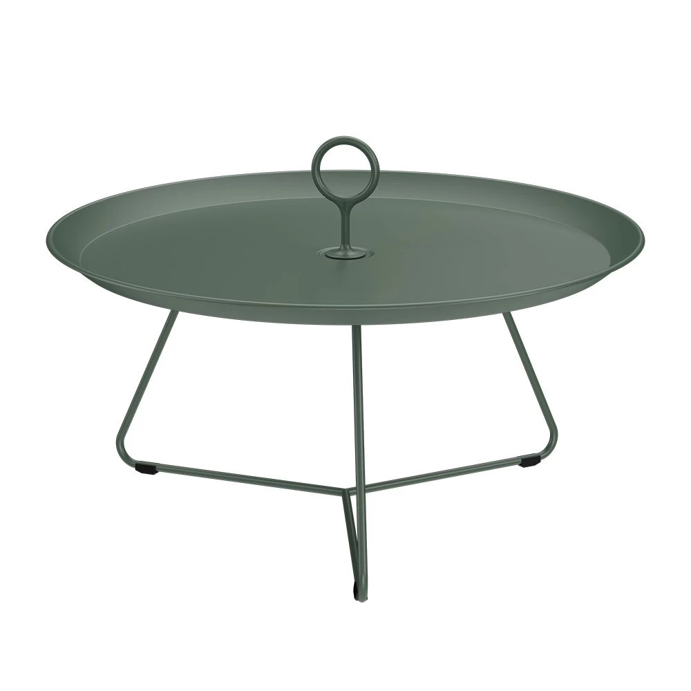 Entdecken Sie den EYELET Tray Tisch Ø70 in der attraktiven Farbe Kieferngrün! Dieser wunderschöne Beistelltisch ist nicht nur ein Blickfang, sondern auch äußerst praktisch. Mit einer Tischplatte aus Aluminium, einem Griff aus Aluminium und einem Rahmen aus Stahl ist er robust und langlebig.