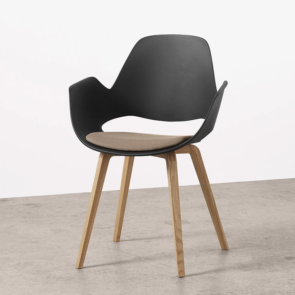 Houe FALK Stuhl Mit Armlehne Und Holzgestell Aus Eiche Massiv Geölt Und Schale: Schwarz, Sitzkissen Pine Green