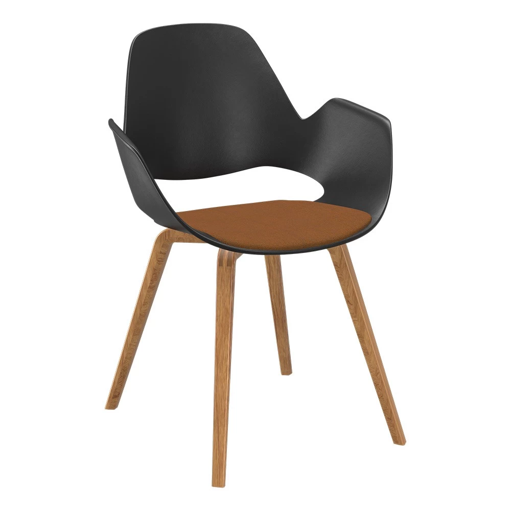 Houe FALK Stuhl Mit Armlehne Und Holzgestell Aus Eiche Massiv Geölt Und Schale: Schwarz, Sitzkissen Terracotta