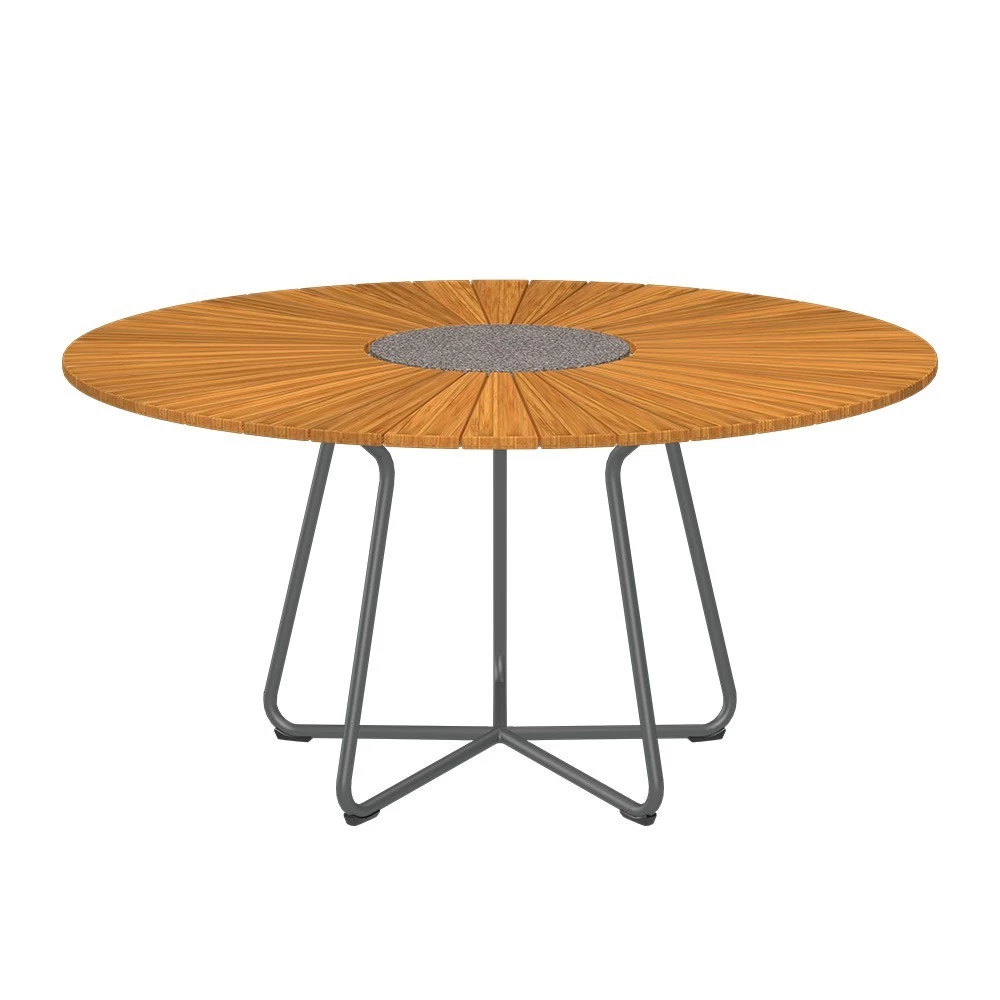 Houe Gartensitzgarnituren Set 4x Sessel Click Petrol Mit CIRCLE Gartentisch Aus Bambus Ø150