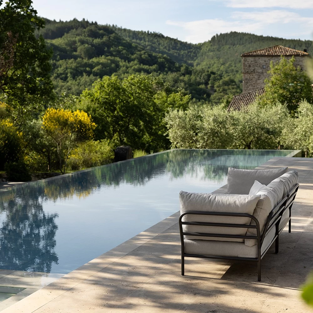 Entdecken Sie die exklusive Gartenmöbelkollektion LEVEL2, die perfekt für Ihren Außenbereich geeignet ist! Mit dem LEVEL2 Ecksofa in der eleganten Farbe Muted White und den charakteristischen Kissen aus Sunbrella-Heritage-Stoff wird Ihr Garten zu einem stilvollen Loungebereich. Das Sofa besteht aus einem robusten Aluminiumrahmen, der für Stabilität und Langlebigkeit sorgt. Die Kissen bestehen aus hochwertigen Materialien, darunter 50% recyceltes Acryl, 47% Acryl und 3% Polyester. Sie sind wasserabweisend und fleckenfest, sodass Sie sich keine Sorgen um Feuchtigkeit oder Verschmutzungen machen müssen.