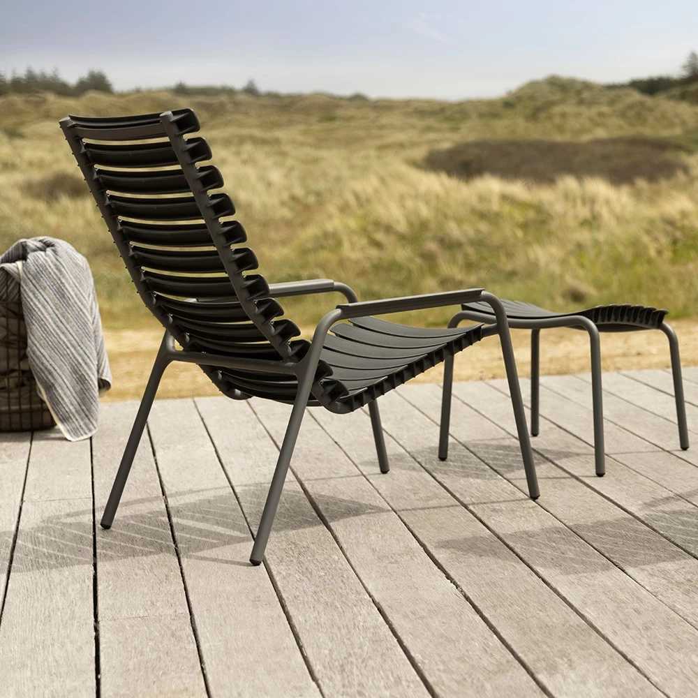 Entdecken Sie den ReCLIPS Fußhocker – die perfekte Ergänzung für Ihren Garten! Mit seinem modernen Design und hochwertiger Verarbeitung wird er sicherlich zum Blickfang in Ihrem Außenbereich. Der Fußhocker ist in einer eleganten schwarzen Monofarbe erhältlich und besteht aus strapazierfähigem dänischem Haushaltskunststoff (PP) für die Lamellen und den Sitz. Der Rahmen und die Basis bestehen aus Aluminium, was dem Fußhocker eine robuste und langlebige Struktur verleiht. Diese Materialien sind speziell für den Einsatz im Freien entwickelt und bieten eine hervorragende Witterungsbeständigkeit.