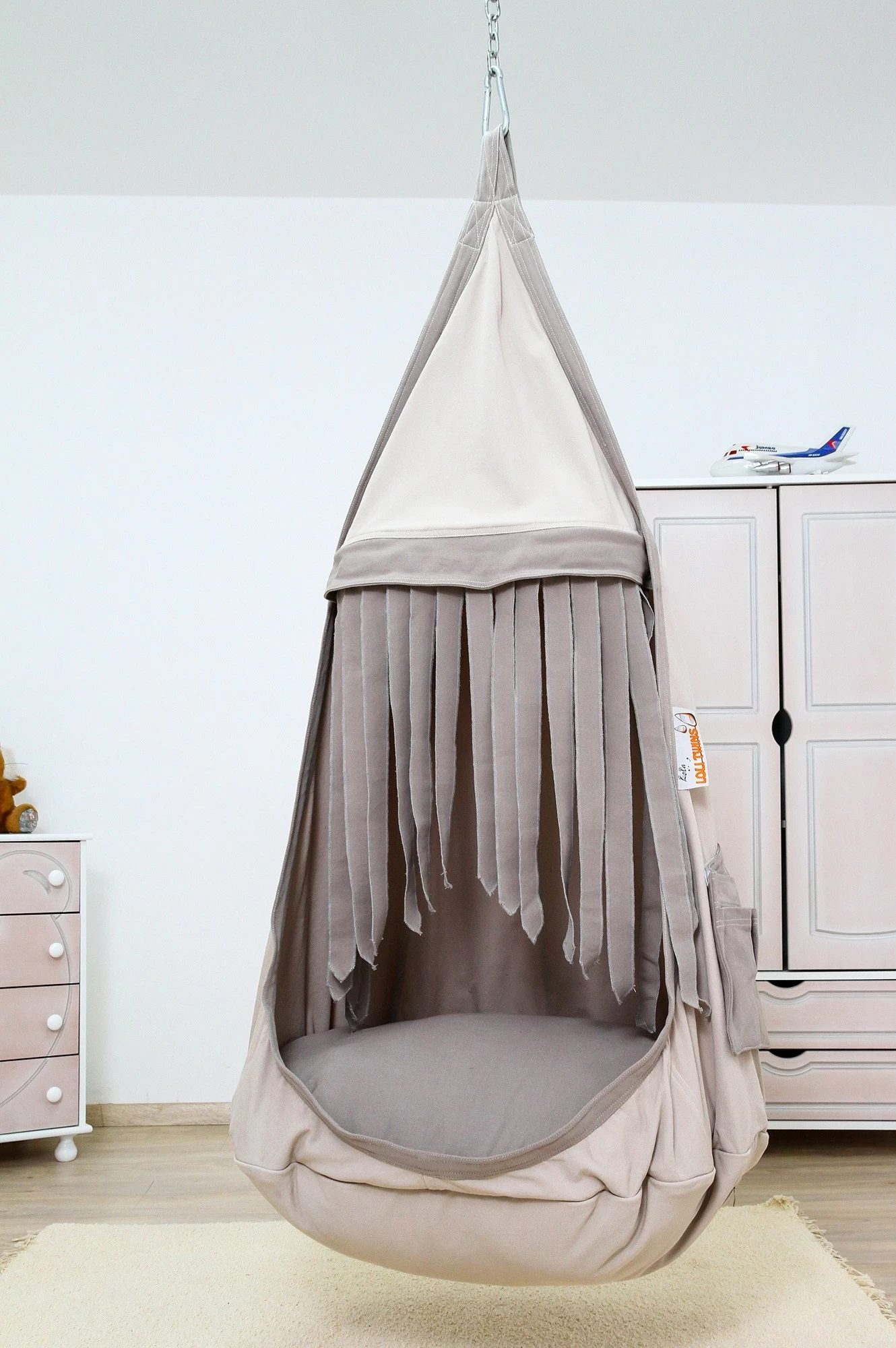 Der Loli Twins ist einfach traumhaft bequem, sodass Ihre Schätze gar nicht mehr heraussteigen möchten. Das Schaukelnest ist mit einem großen und weichen Kissen ausgestattet. Durch einen angebrachten Reißverschluss lässt sich das Kissen zum Lüften oder Waschen herausnehmen.