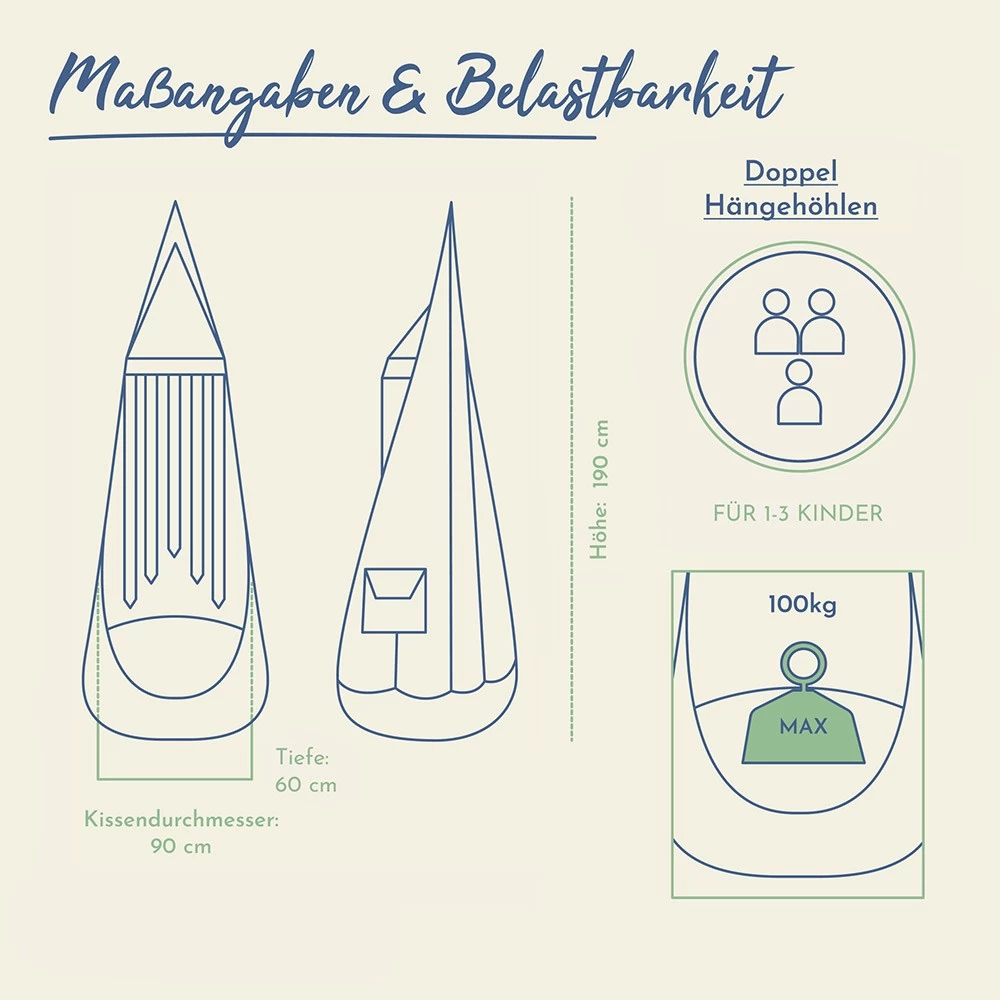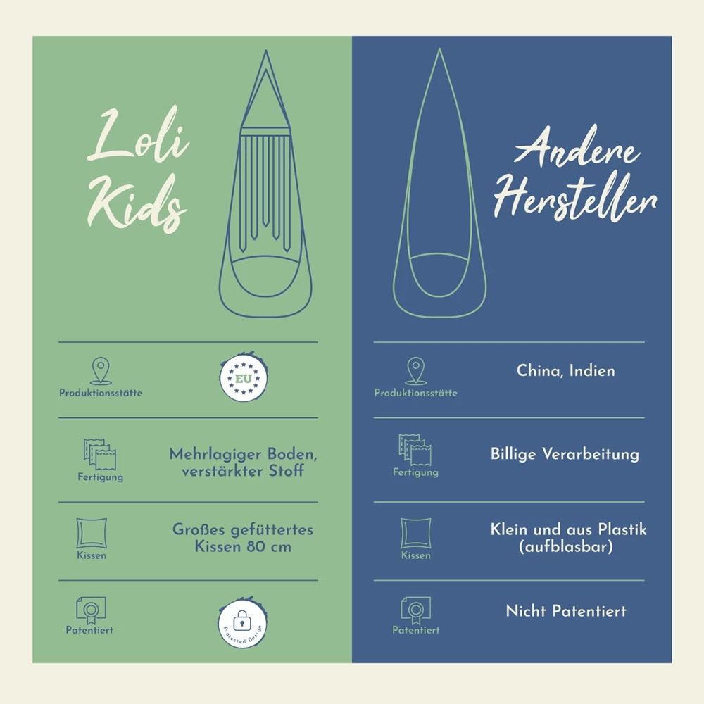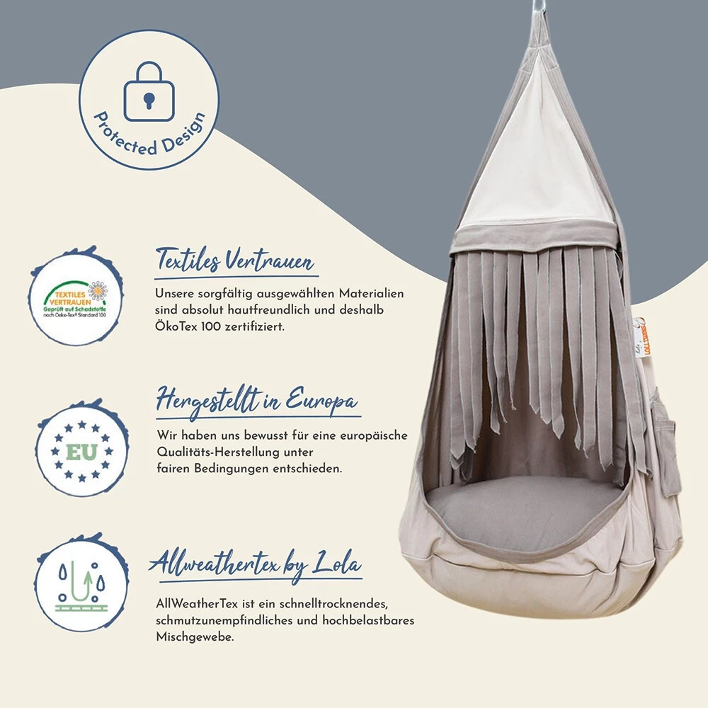 Nur Lola Hängematten produziert die Hängehöhlen in der beeindruckenden Übergröße und im tollen Design.