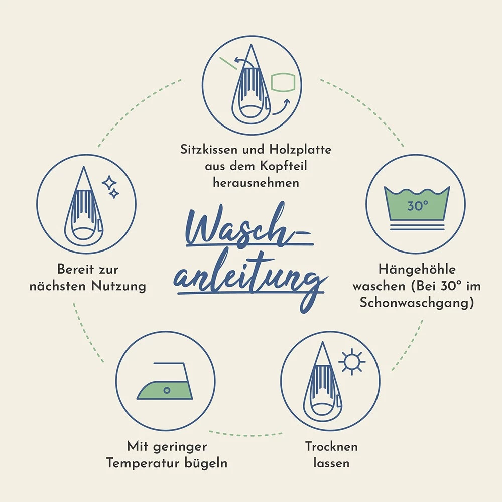 Unglaublich komfortabel mit dem extra großen und kuschligen Kissen. Bei Bedarf lässt es sich durch das Öffnen des Reißverschlusses an der Unterseite der Hängehöhle herausnehmen. Mit einem Durchmesser des Kissens von ca. 80 cm und einer Länge von 150 cm ist das Hängenest in jedem Zimmer eine tolle Bereicherung. Die Hängehöhle ist für Kinder im Alter von 3 bis 10 Jahren geeignet.