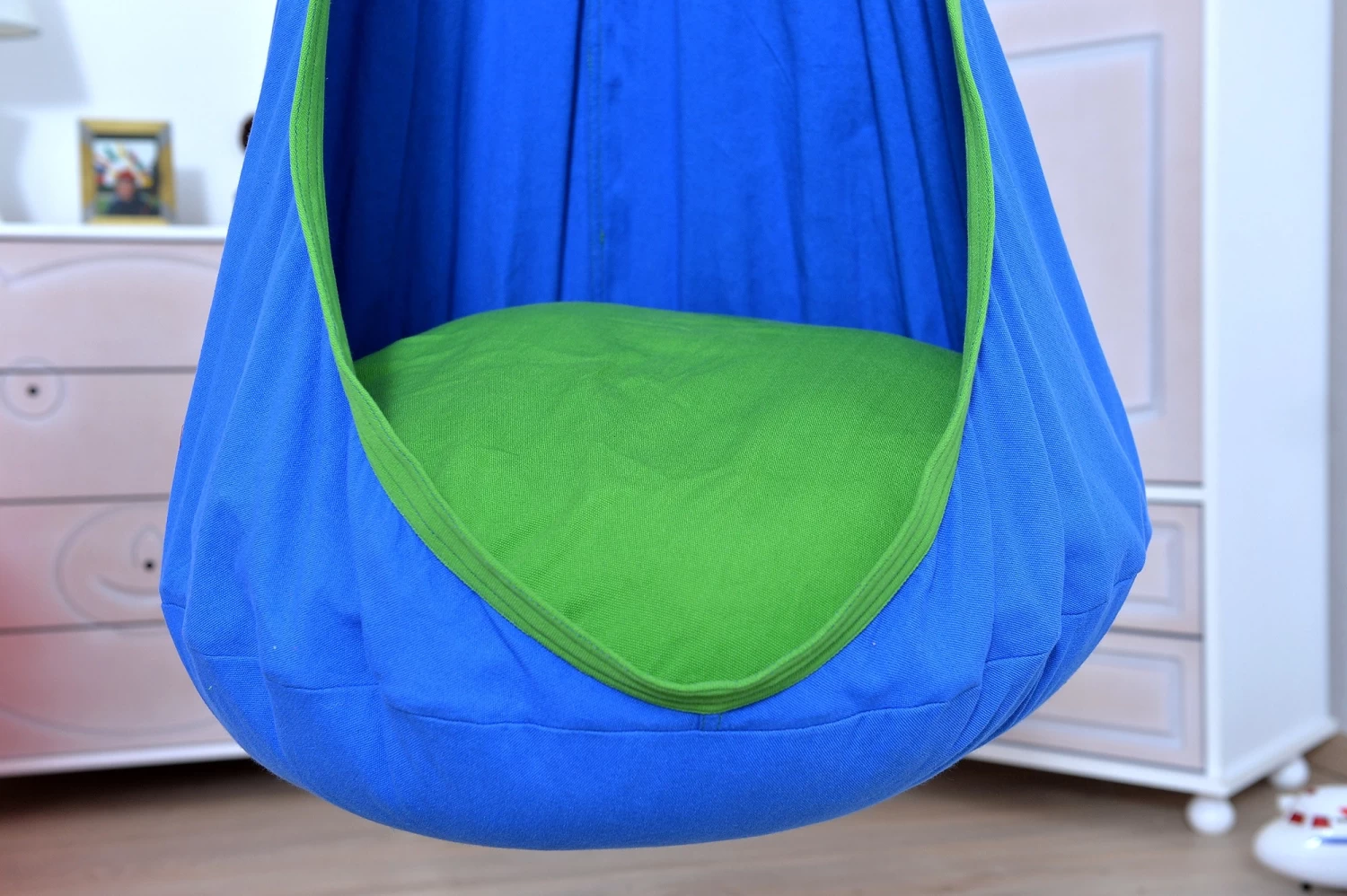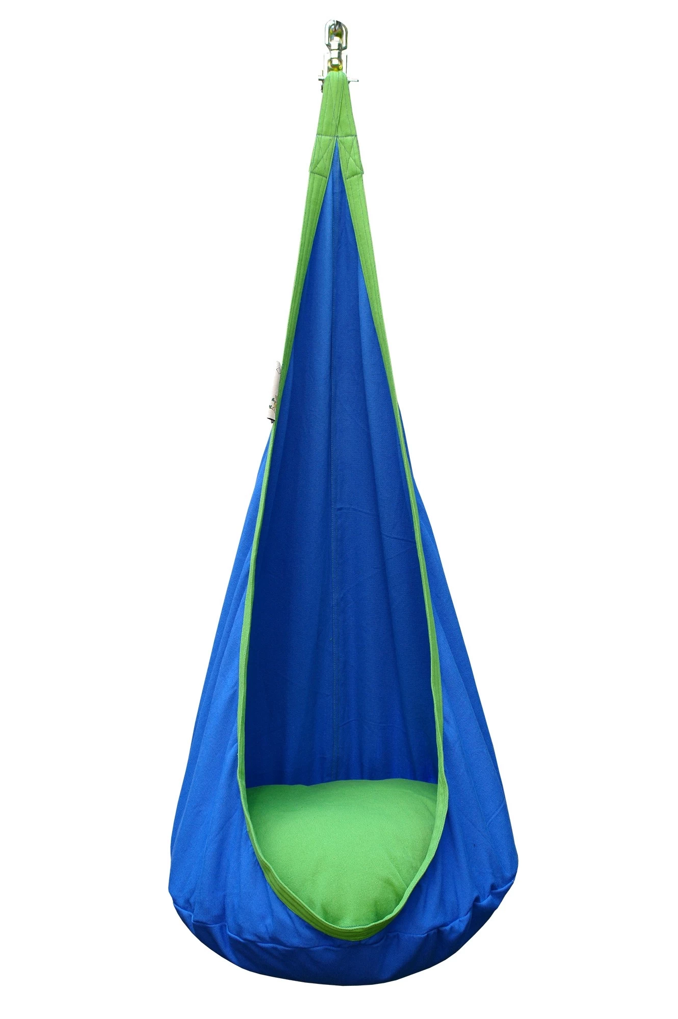 Da wir unsere Kinder Hängehöhlen nicht mit aufblasbaren Kissen ausstatten wie viele andere Anbieter, sondern ausschließlich mit einem richtigen gepolsterten Kissen, ist das Kindernest äußerst angenehm und gemütlich und bietet eine große Sitzfläche.