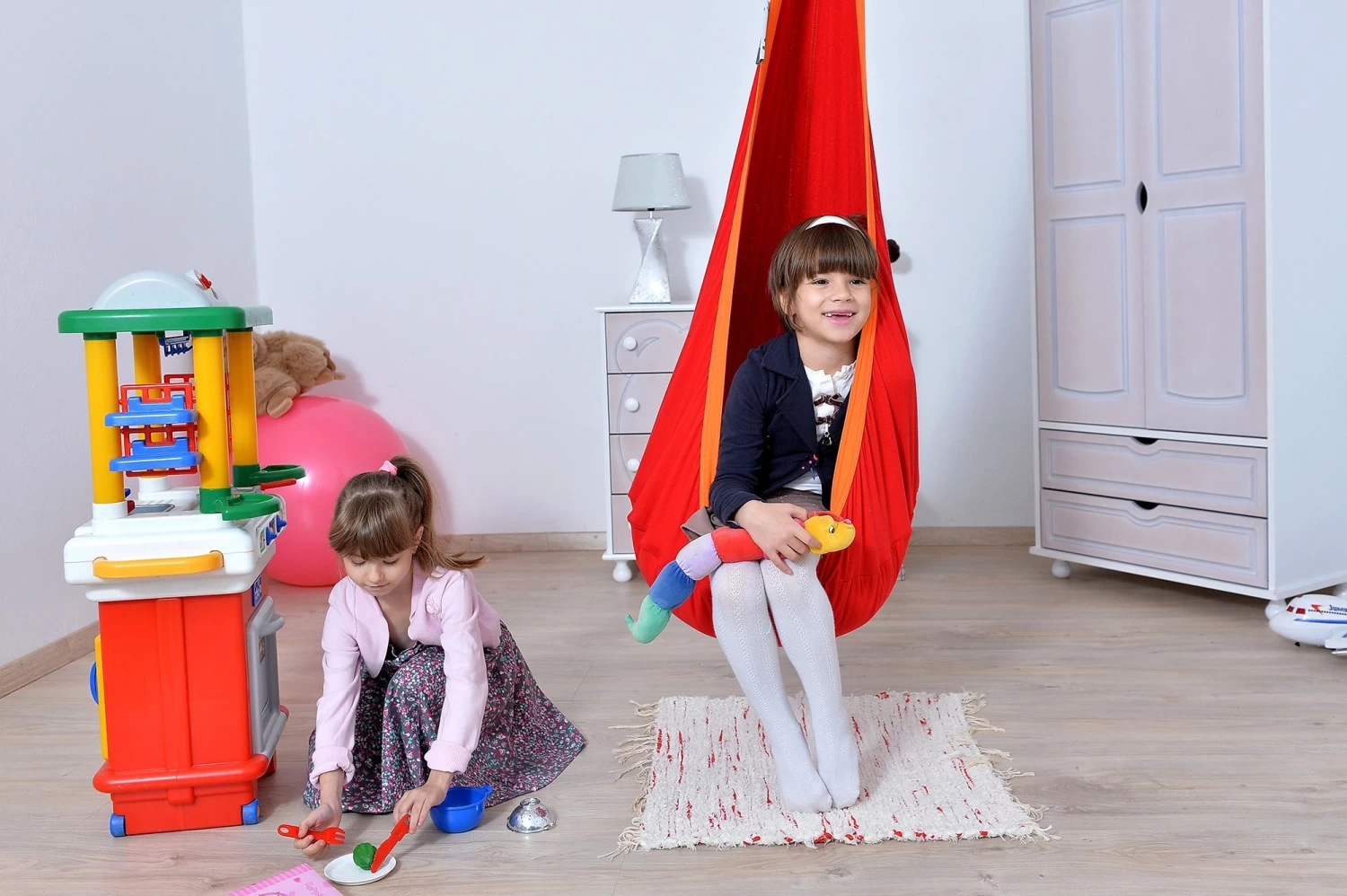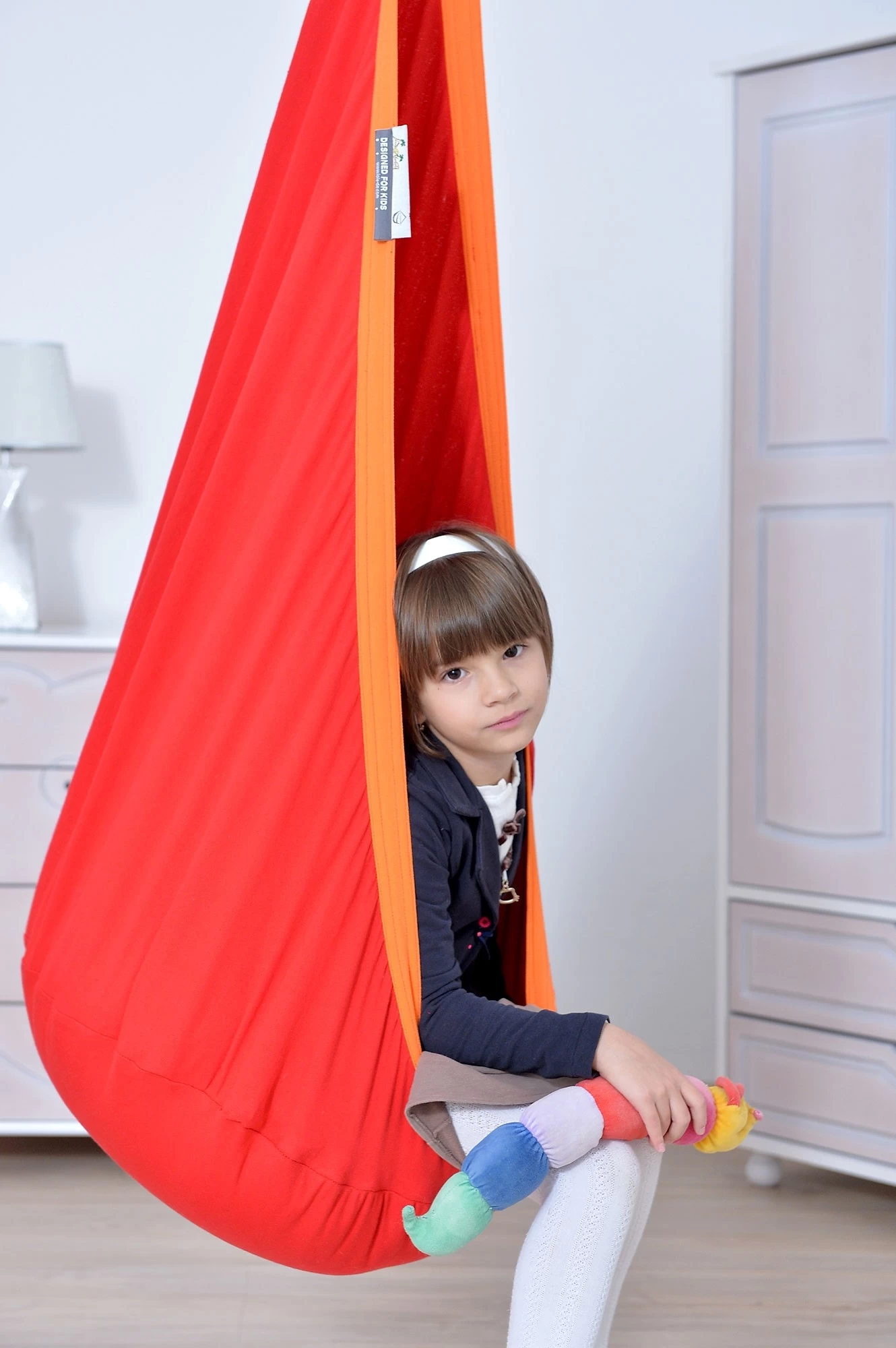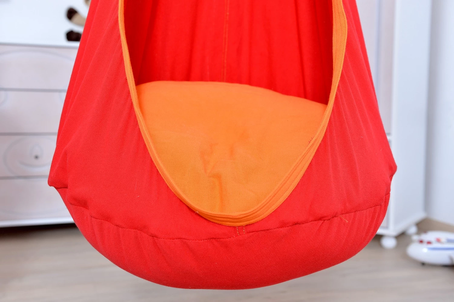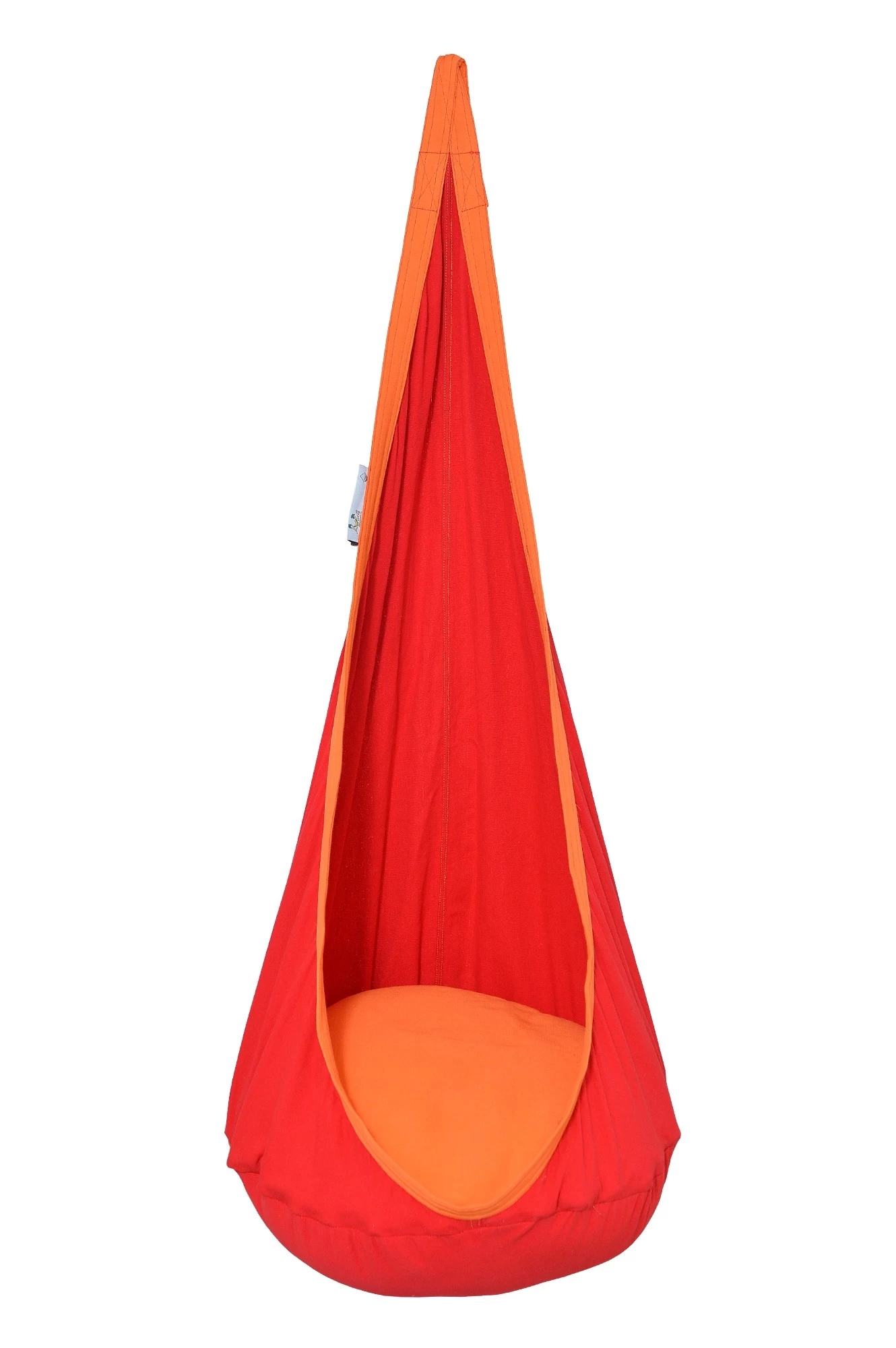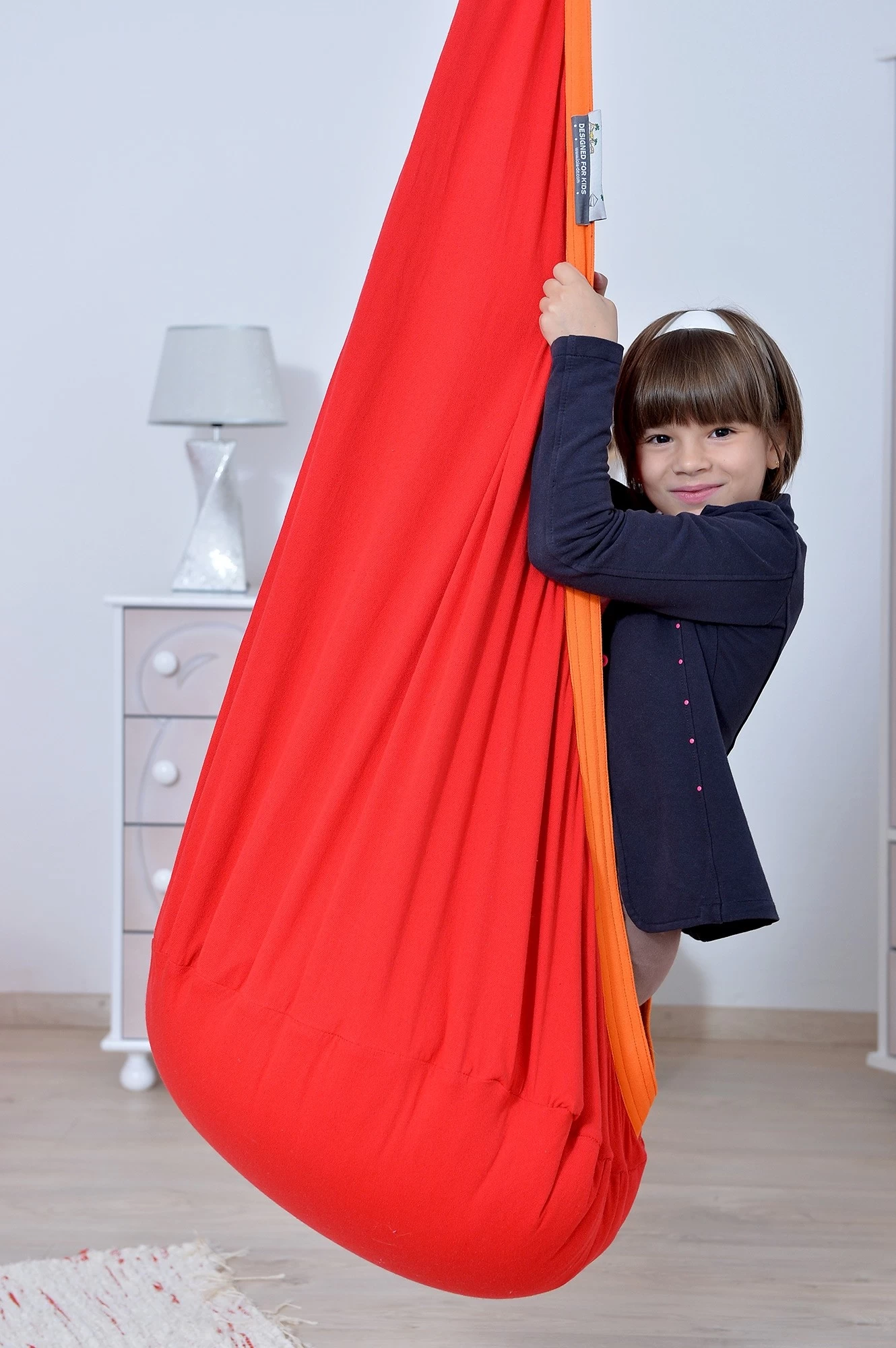 Da wir unsere Kinder Hängehöhlen nicht mit aufblasbaren Kissen ausstatten wie viele andere Anbieter, sondern ausschließlich mit einem richtigen gepolsterten Kissen, ist das Kindernest äußerst angenehm und gemütlich und bietet eine große Sitzfläche.