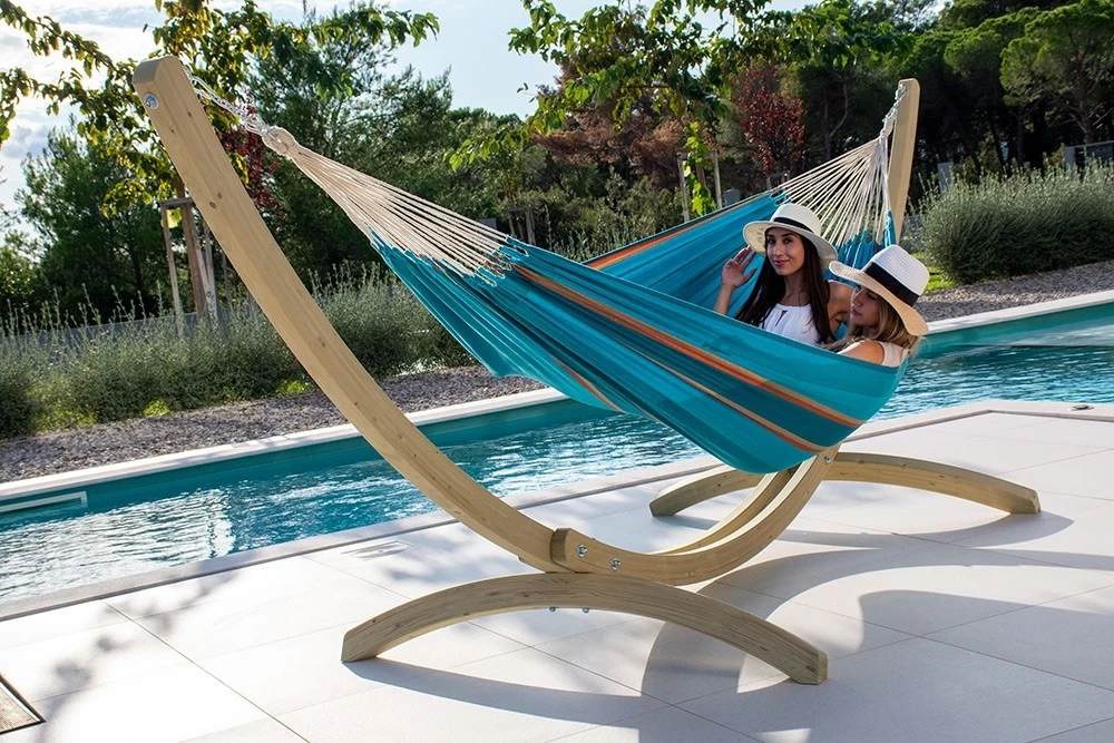 Das hochwertige Set aus der Hängematte Santa Maria in der Familien-Größe, sowie dem qualitätsvollen Fichtengestell Gigant. Ein spektakuläres Set zum Schauckeln und Spaß haben.