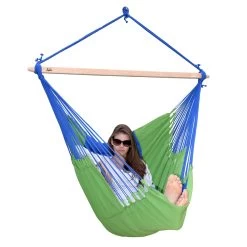 Der Panorama Chair ist gesteppt, gefüttert und mit einem wetterfesten Stoff überzogen. Mit 1,30m Breite und 2m Länge ist der Hängestuhl schon fast als klassische Hängematte zu sehen. Erleben Sie das einzigartige Liege- und Sitzgefühl. Panorama Chair verbindet platzsparende Eigenschaften eines Hängestuhls mit einem völlig neuen Liegegefühl , welches Sie bisher nur von Hängematten kannten.