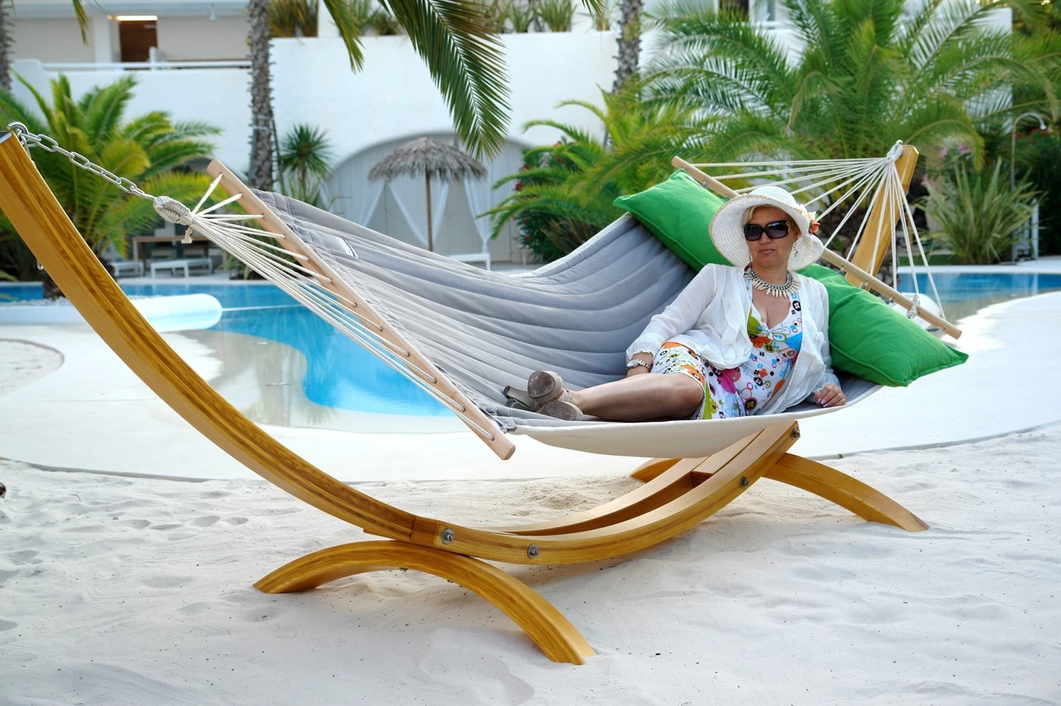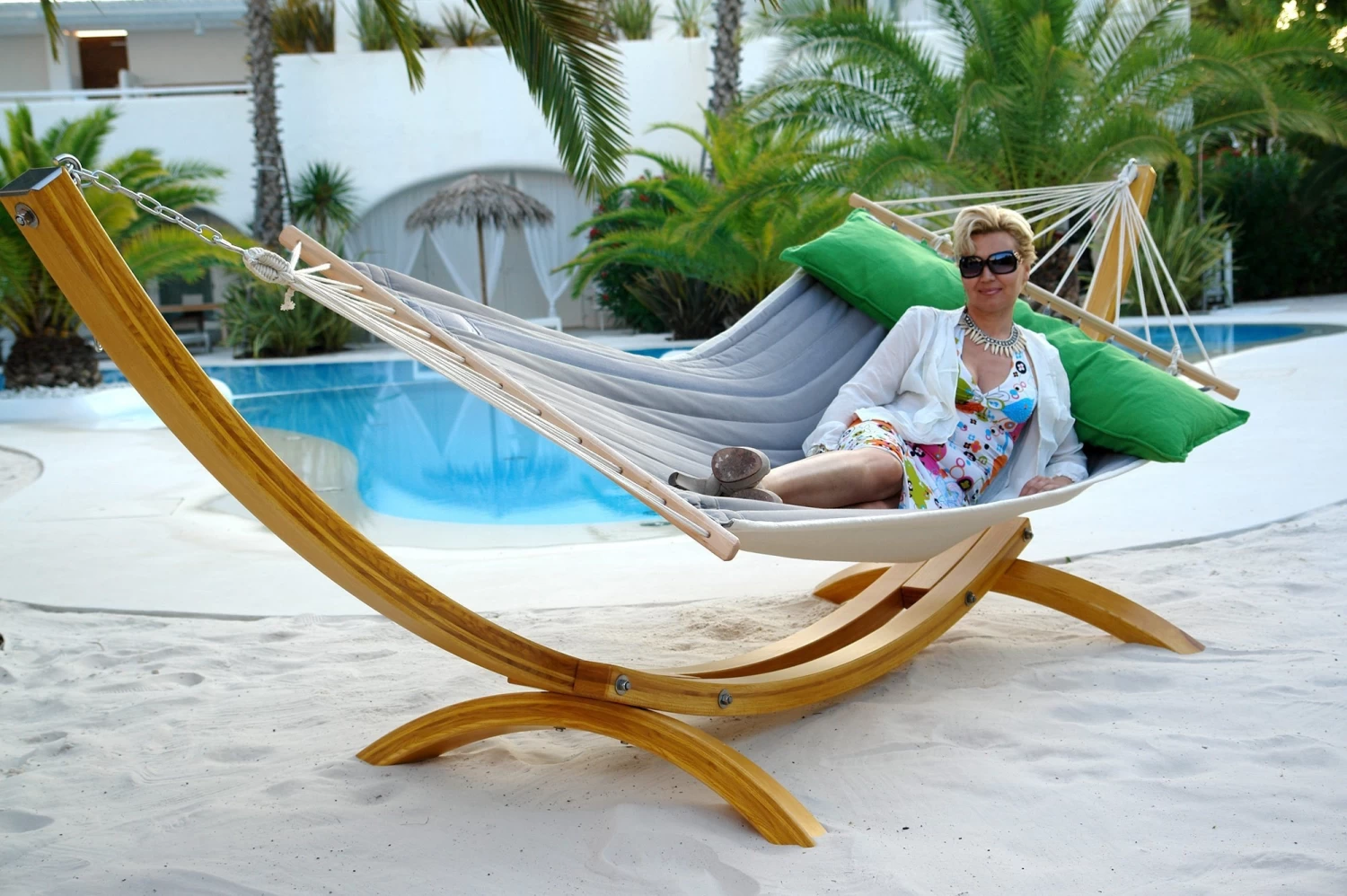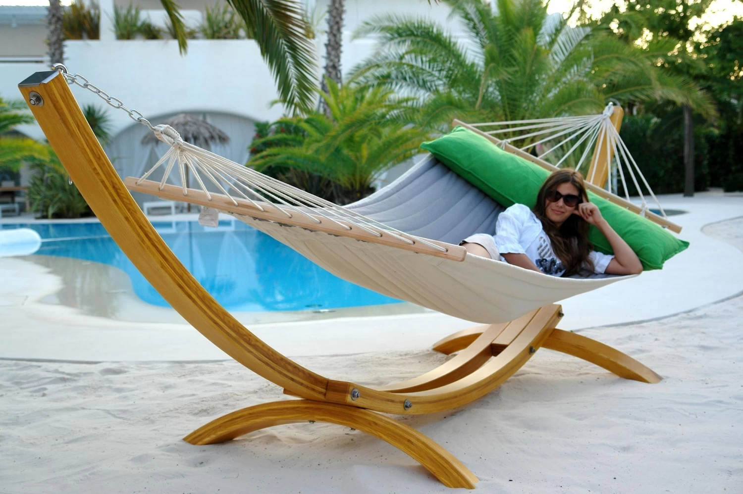 Die American Hammock Lifestyle von dem Hersteller Lola im sehr modernen Design und der Trendfarbe Steingrau-Grün, verleiht Ihrem Garten einen luxuriösen Touch. Die richtige Wahl für vollkommenen Komfort und eine absolute Erholung vom Alltag.