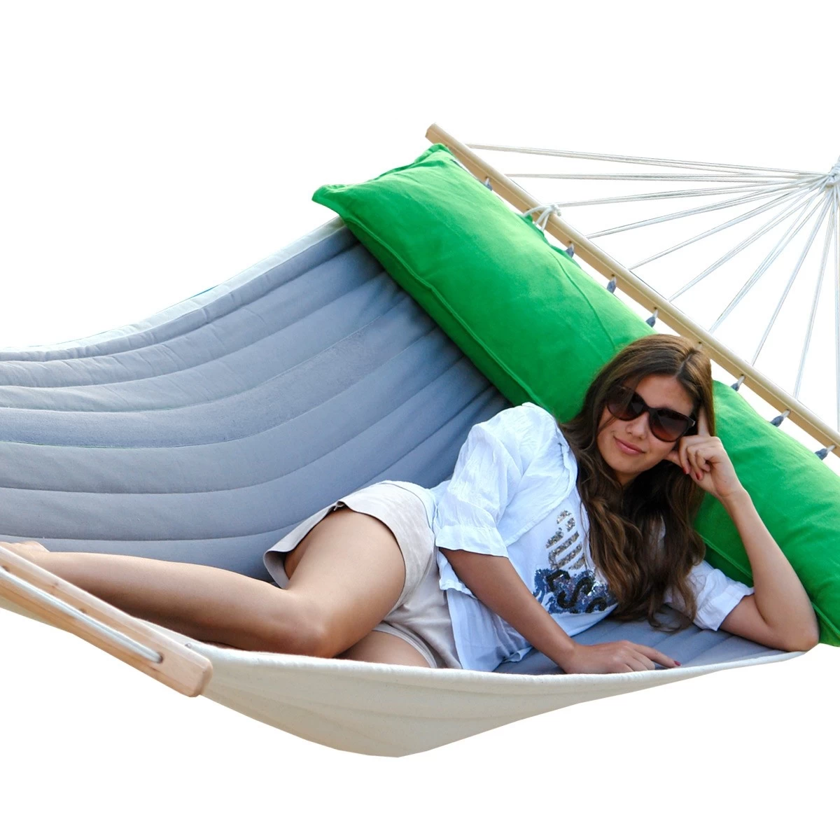 Lola Luxus Stab Hängematte gefüttert American Hammock Lifestyle Single Steingrau-Grün