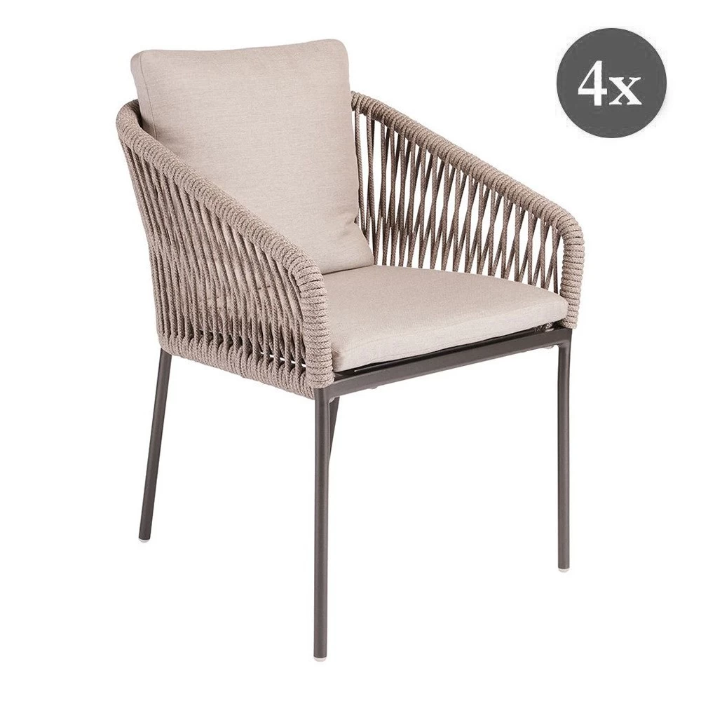 | 4x Stern Stapelsessel Marla Aluminium anthrazit Kordel salt Kissen 100% Polyacryl graubraun |