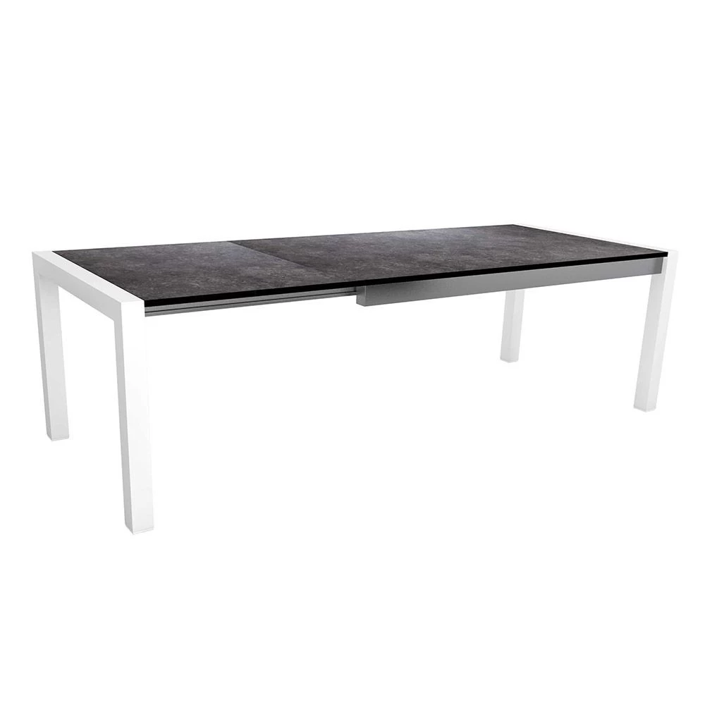 Stern Ausziehtisch 174/254×90 cm Aluminium weiß mit Tischplatte Silverstar Vintage grau