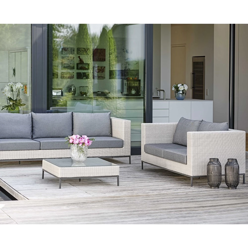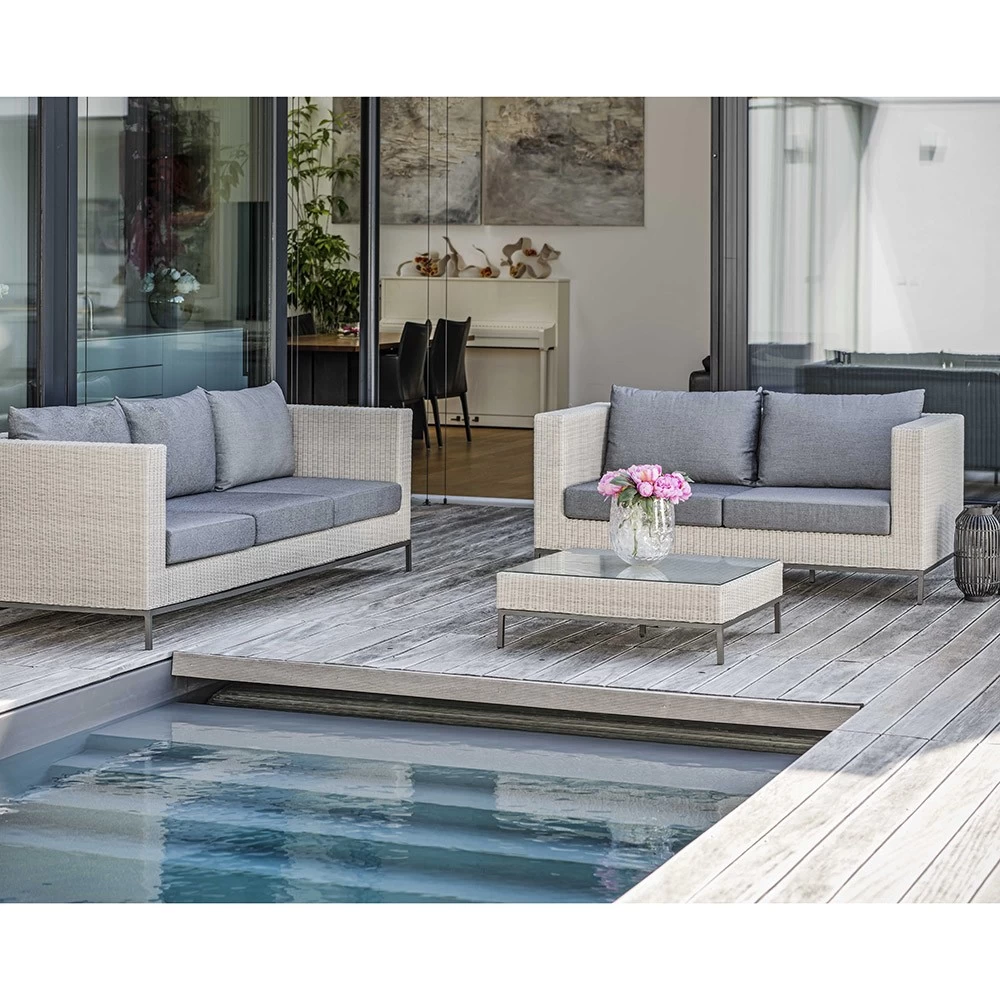 | 1x Stern Fontana Korpus 2-Sitzer Sofa Geflecht Vintage weiß inkl. Sitz- und Rückenkissen seidengrau 100% Polyacryl mit Reißverschluss (ohne Untergestell) |