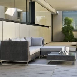 Stern Fontana Korpus Eckelement Geflecht basaltgrau inkl. Sitz- und Rückenkissen seidengrau 100% Polyacryl mit Reißverschluss
