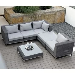 Stern Fontana Korpus Eckelement Geflecht basaltgrau inkl. Sitz- und Rückenkissen seidengrau 100% Polyacryl mit Reißverschluss