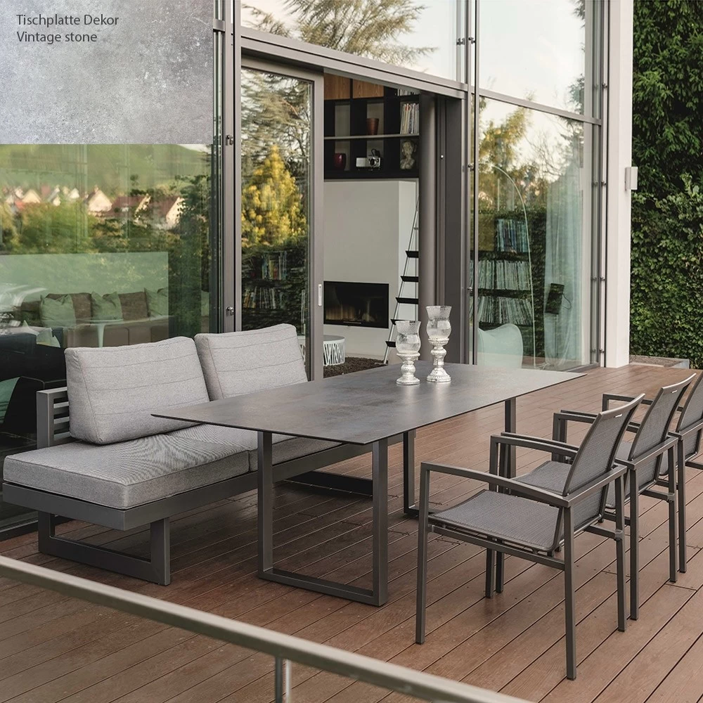 1x Stern Kufentisch Aluminium anthrazit mit Tischplatte Silverstar 2.0, 200×100, Dekor Vintage stone