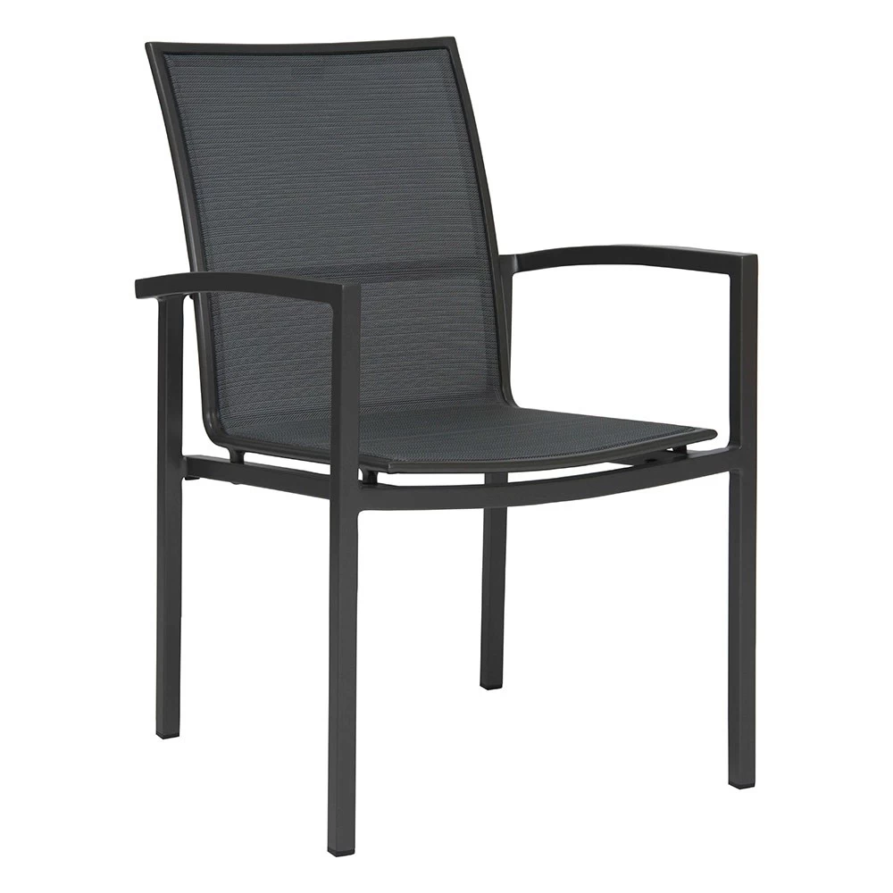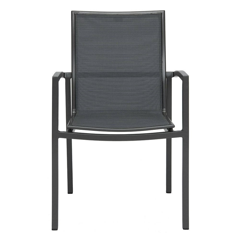 3x Stern SKELBY Stapelsessel anthrazit mit Textilenbezug karbon und Aluminiumarmlehnen anthrazit