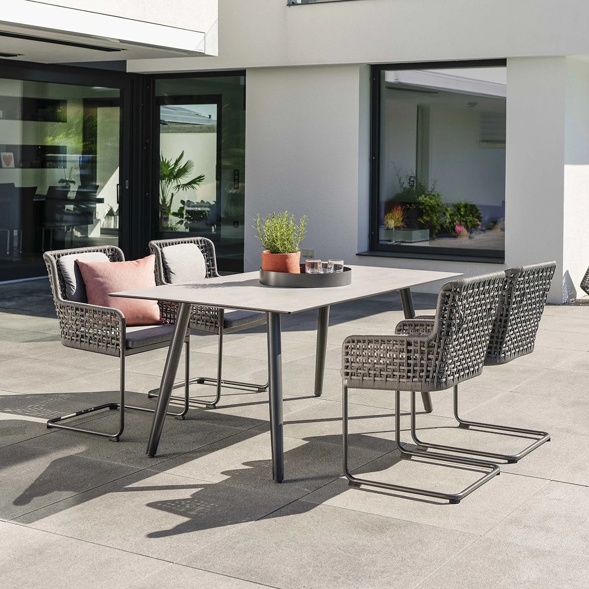 Stern GRETA Freischwinger Aluminium Anthrazit Mit Synthetikfaser Platin Inkl. Sitz- Und Rückenkissen Seidengrau, 100% Polyacryl Mit Reißverschluss