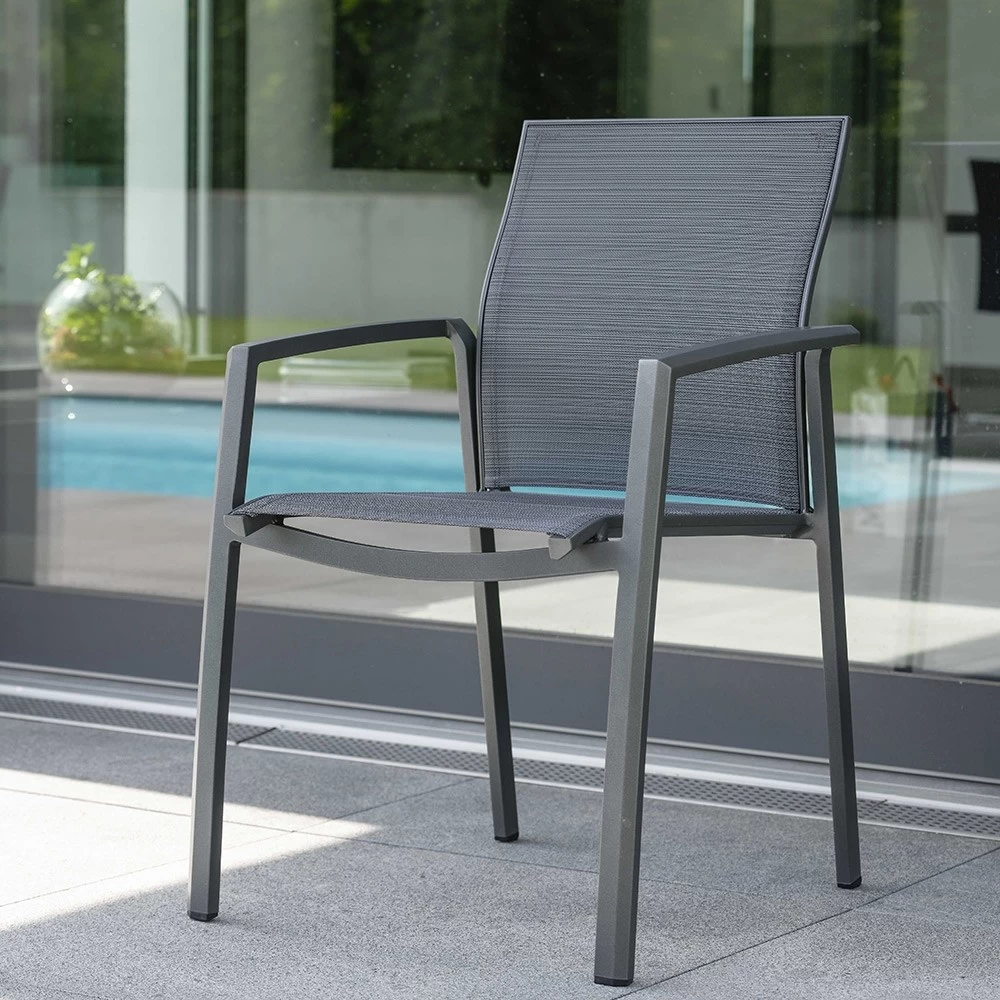 Stern KARI Stapelsessel Aluminium Anthrazit Mit Textilenbezug Karbon Und Aluminiumarmlehnen Anthrazit